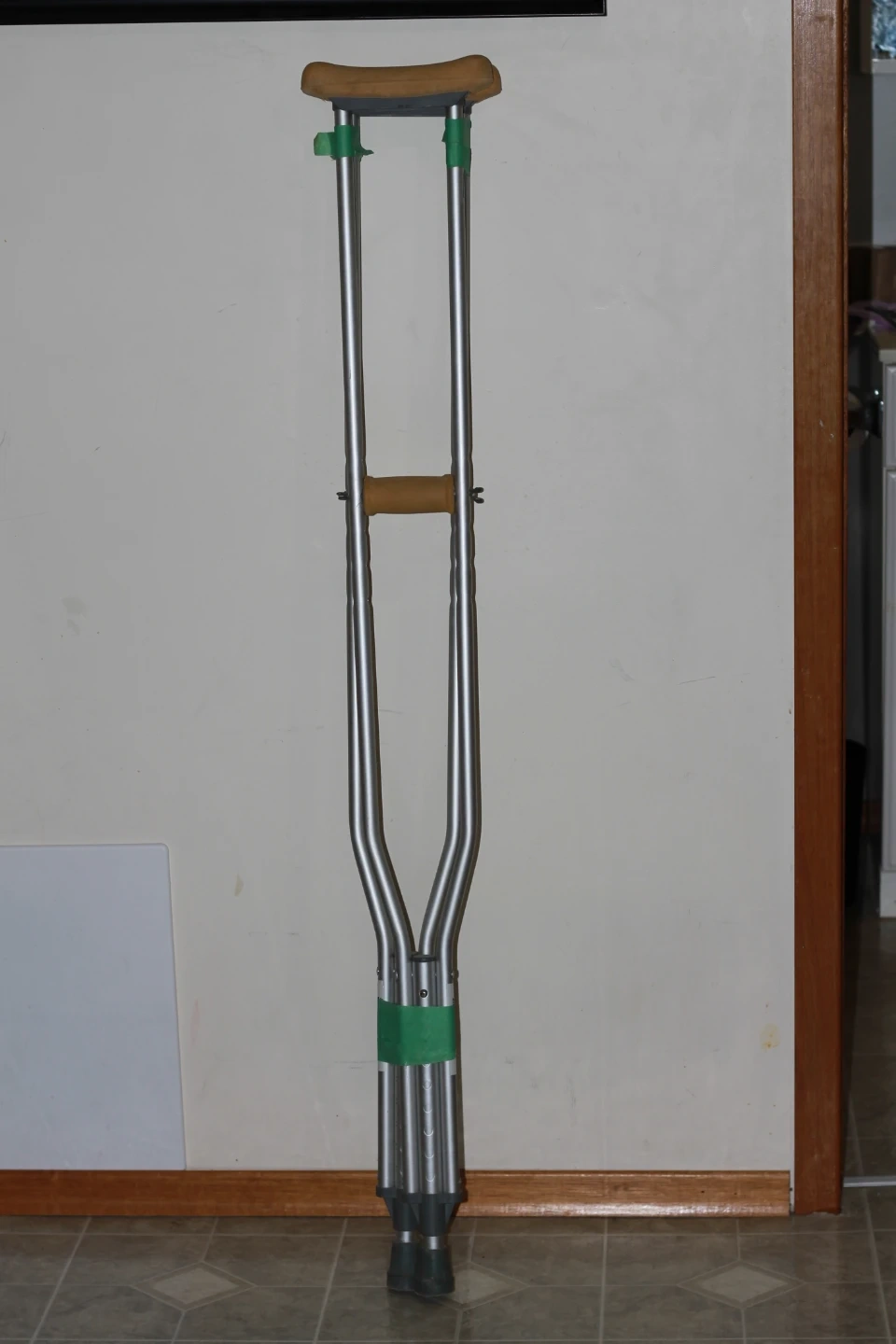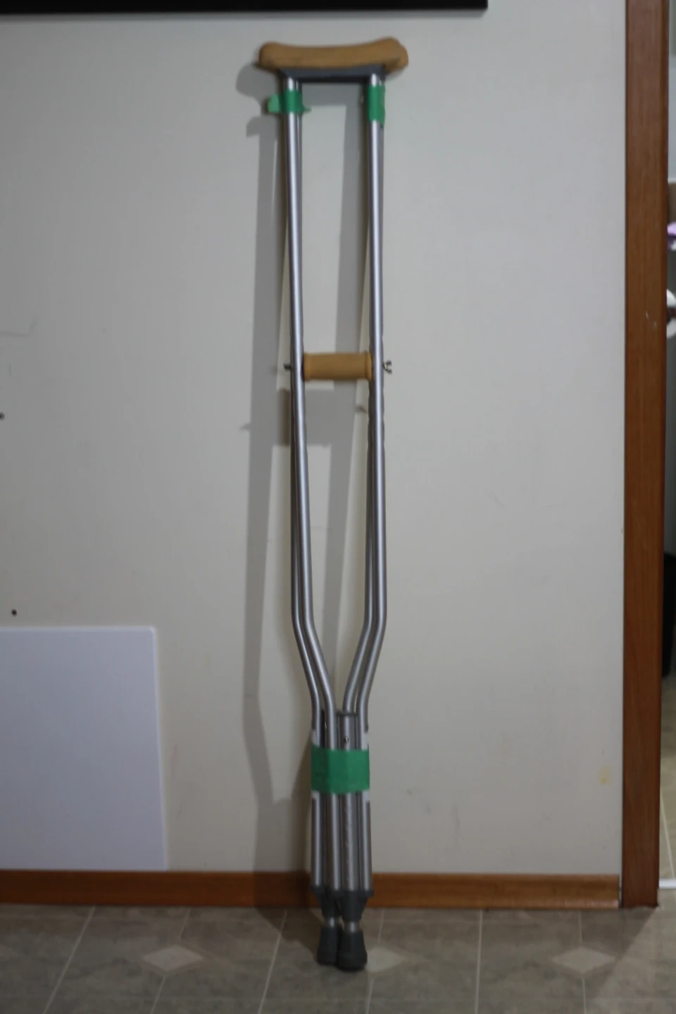 Adjustable aluminum crutches with comfortable hand grips. Height markings for precise adjustment. Great for temporary mobility needs!