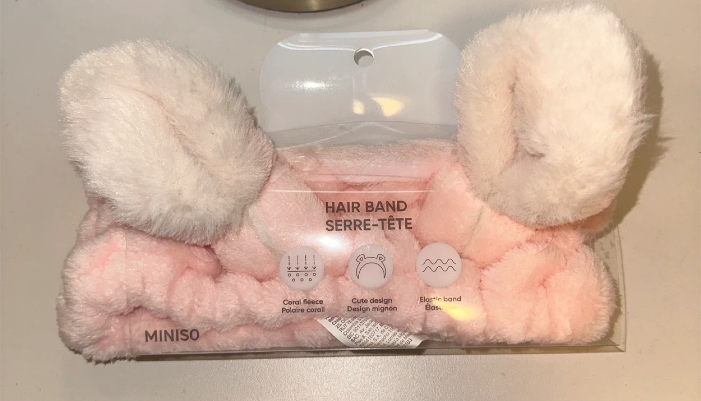 This MINISO hair band is made with soft coral fleece material.