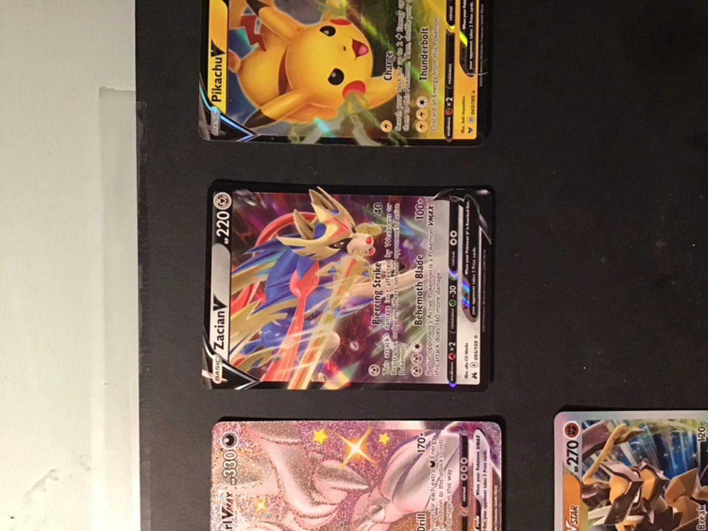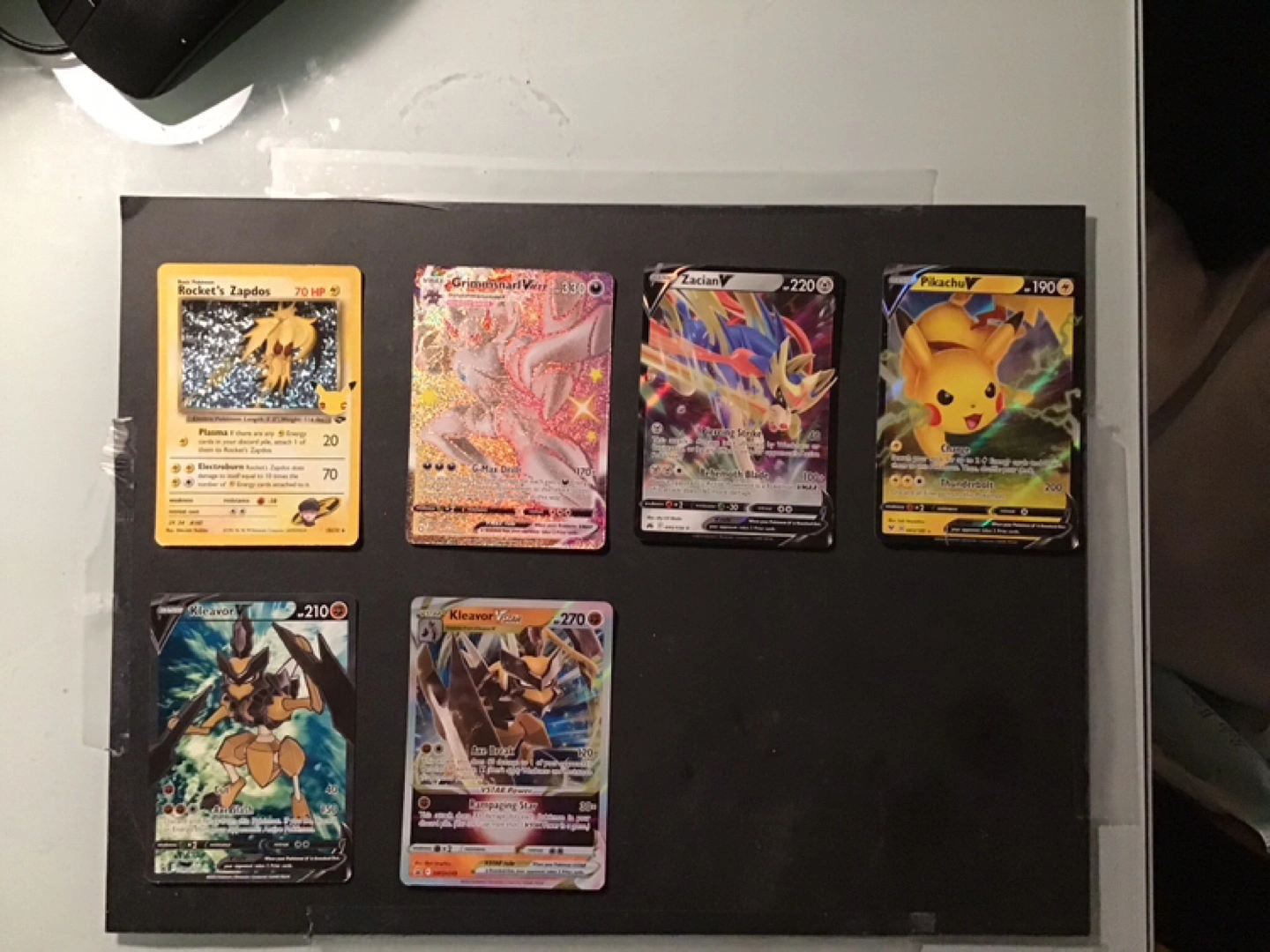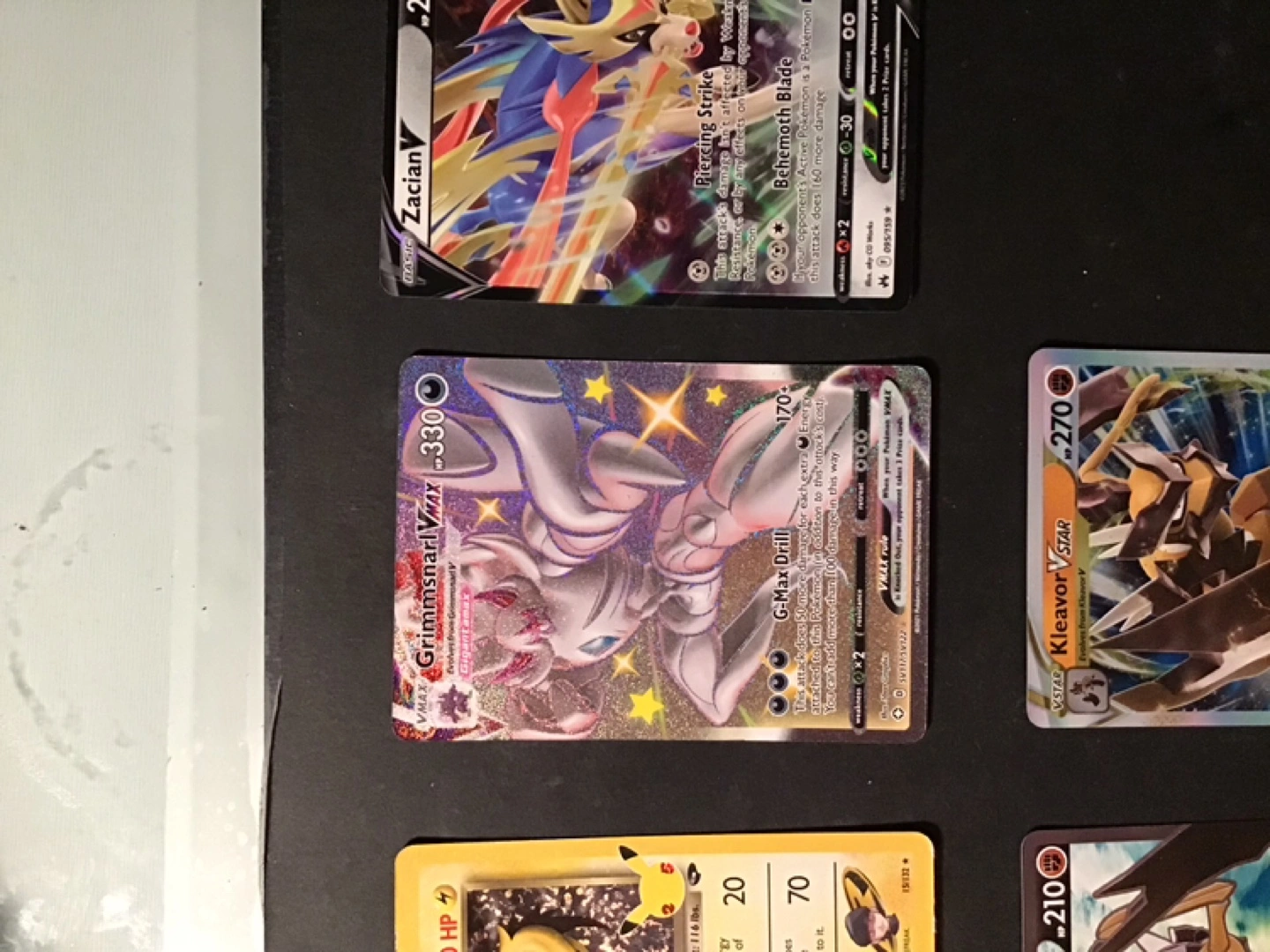 Lot of Pokemon cards. Includes Zacian V, Grimmsnarl Vmax, and Kleavor V. Various rarities and holo patterns. Great for collectors or players. All are in good condition. Grimmsnarl is 7$everything else is 5$