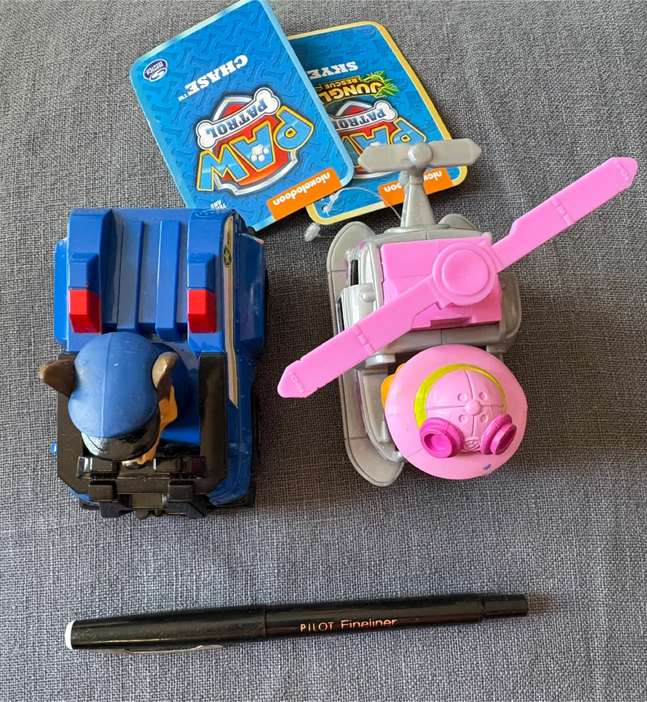 New with tags: Two Paw Patrol Jungle Rescue vehicles and figures, including Chase's police car and Skye's helicopter. Great for playtime adventures!