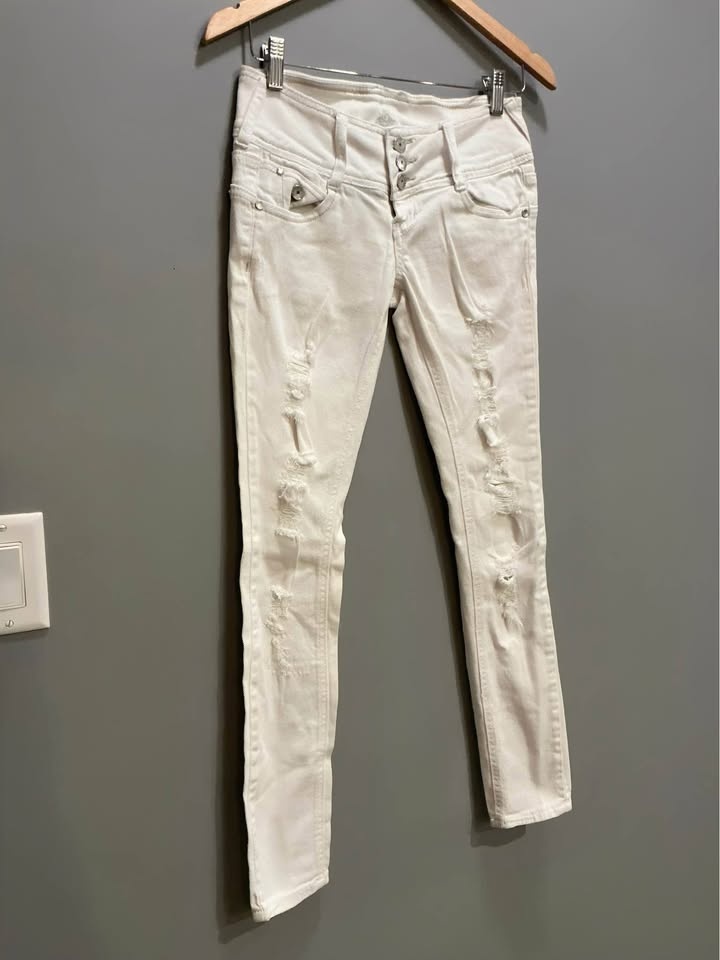Elevate your denim collection with these statement-making white skinny jeans by Almost Famous. Perfectly blending edgy street style with early 2000s glam, these jeans feature a flattering fit and eye-catching details from every angle. Whether you are styling them for a festival, a night out, or a chic summer look, these jeans are a guaranteed conversation starter.