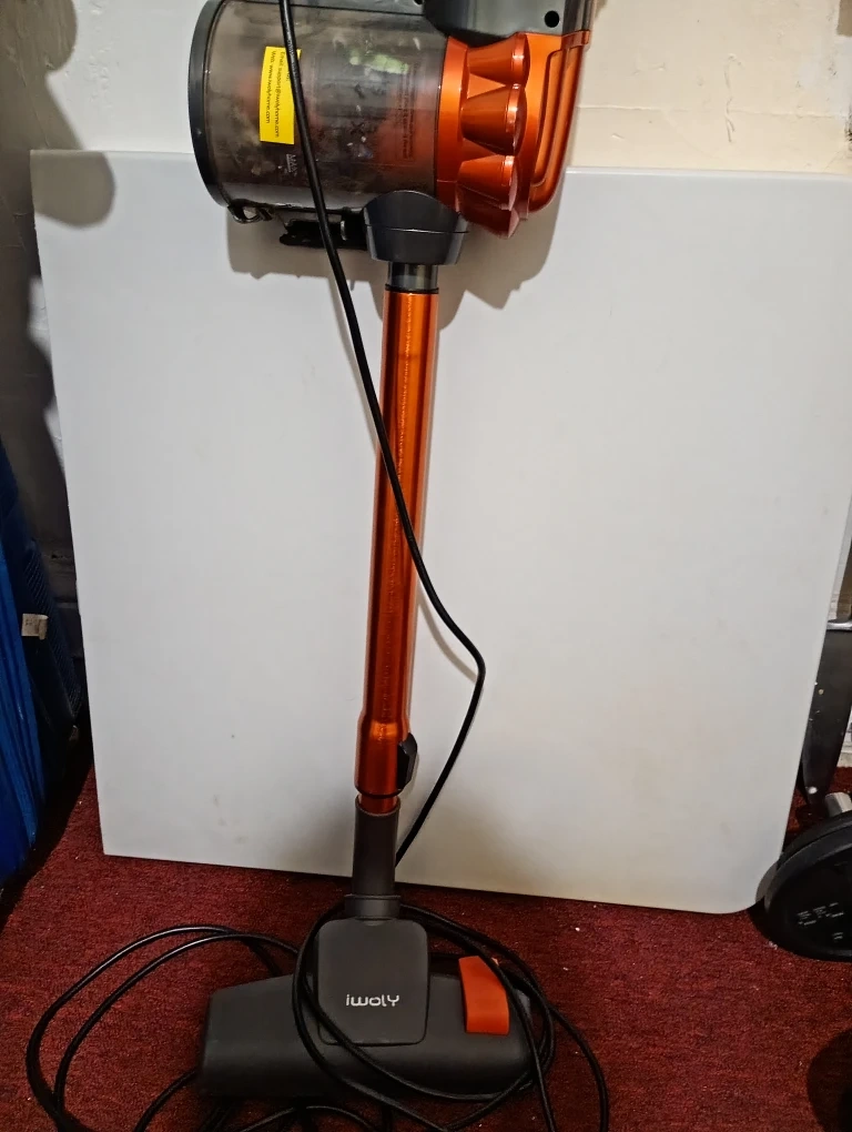 This is an Iwoly Stick Vacuum Cleaner V600. It features a bagless design and powerful suction. Household use only.