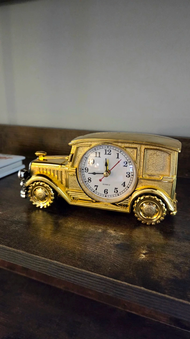 This unique alarm clock is designed to look like a vintage bicycle. It is brand new and never been used. It features a construction with intricate detailing. The clock face is easy to read and it's powered by a quartz movement. It's a fun decorative piece for any desk or shelf! It has two knots – one to set the time, the other to set the alarm clock. Please don't ask for a lower price.