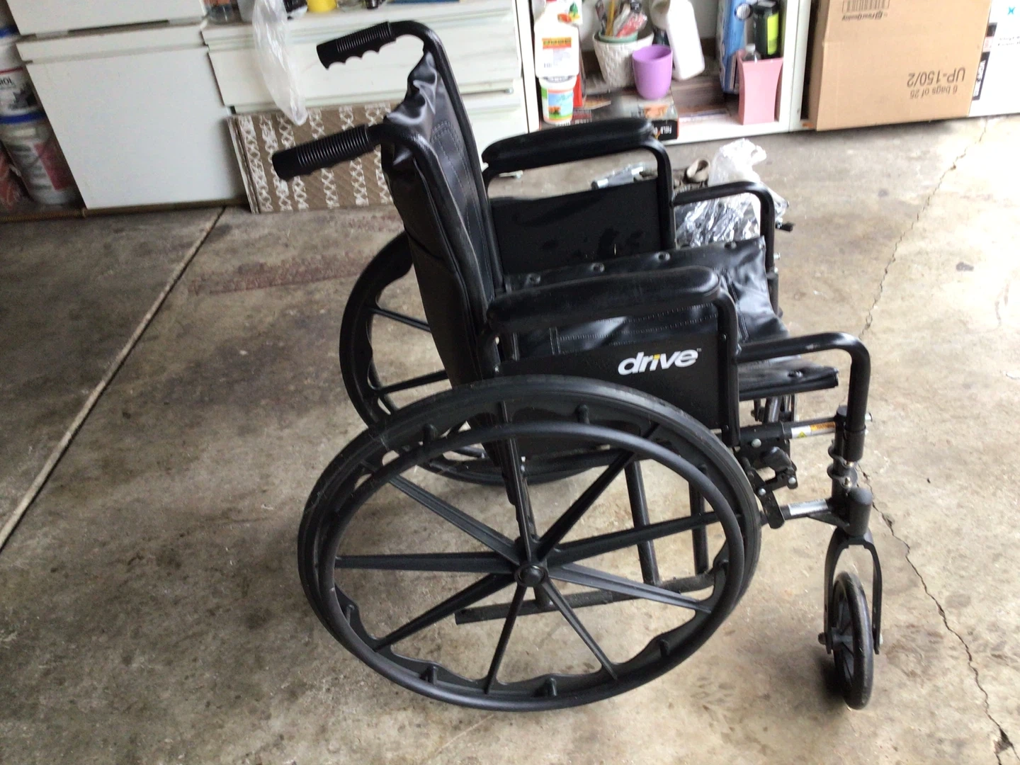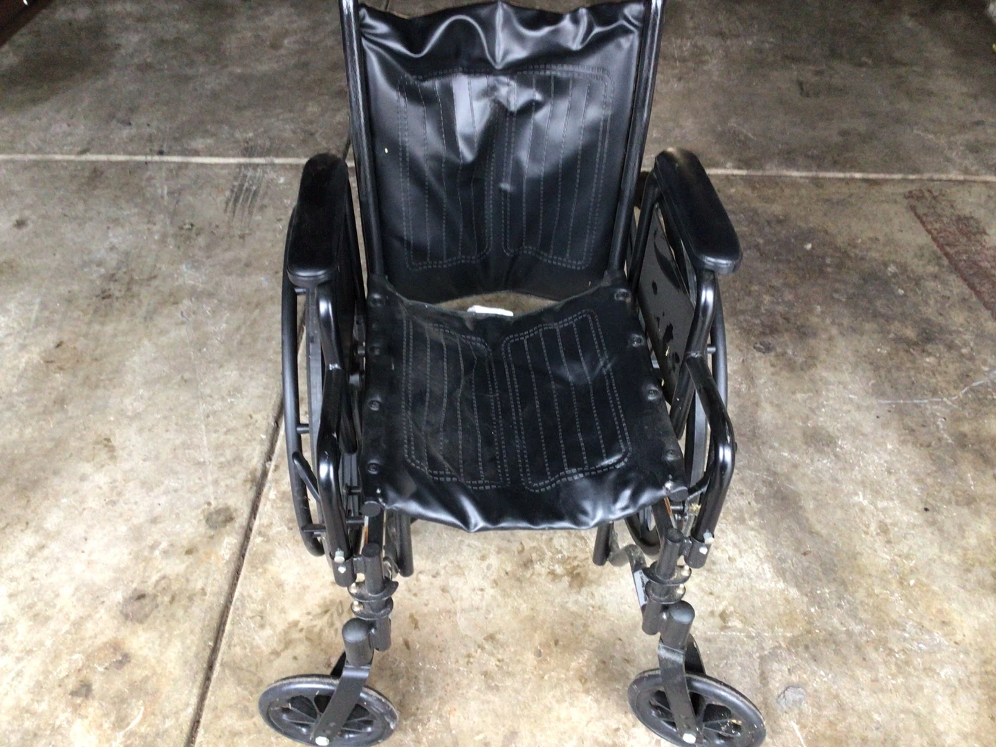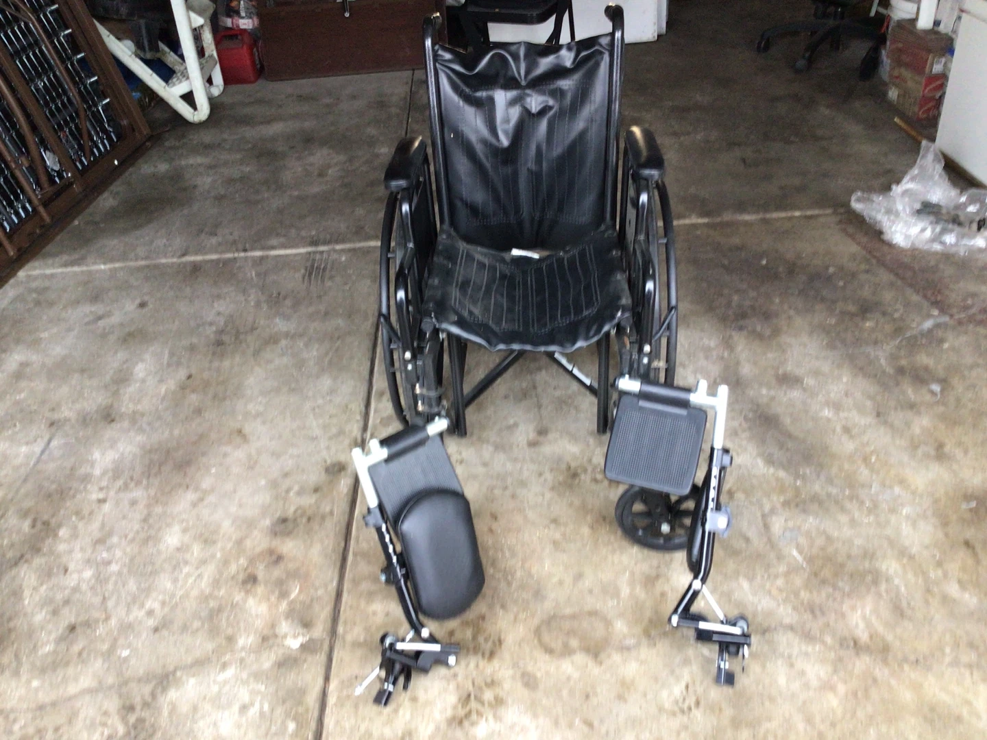 Wheelchair Transport…300lb Capacity 18"Wide Fixed footrest each….please take a good look to the pictures…since there’s a very small tear on the front side corner on the chair…..( this is a brand new item it does look like used item because it’s very dusty it’s been on the garage for a long time…) any concerns feel free to send me a message…thanks.
