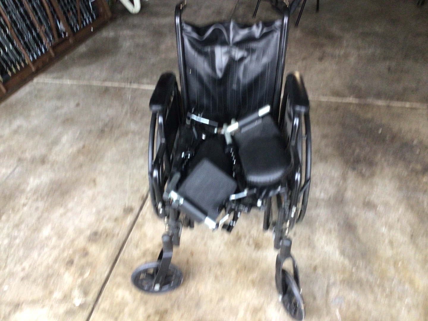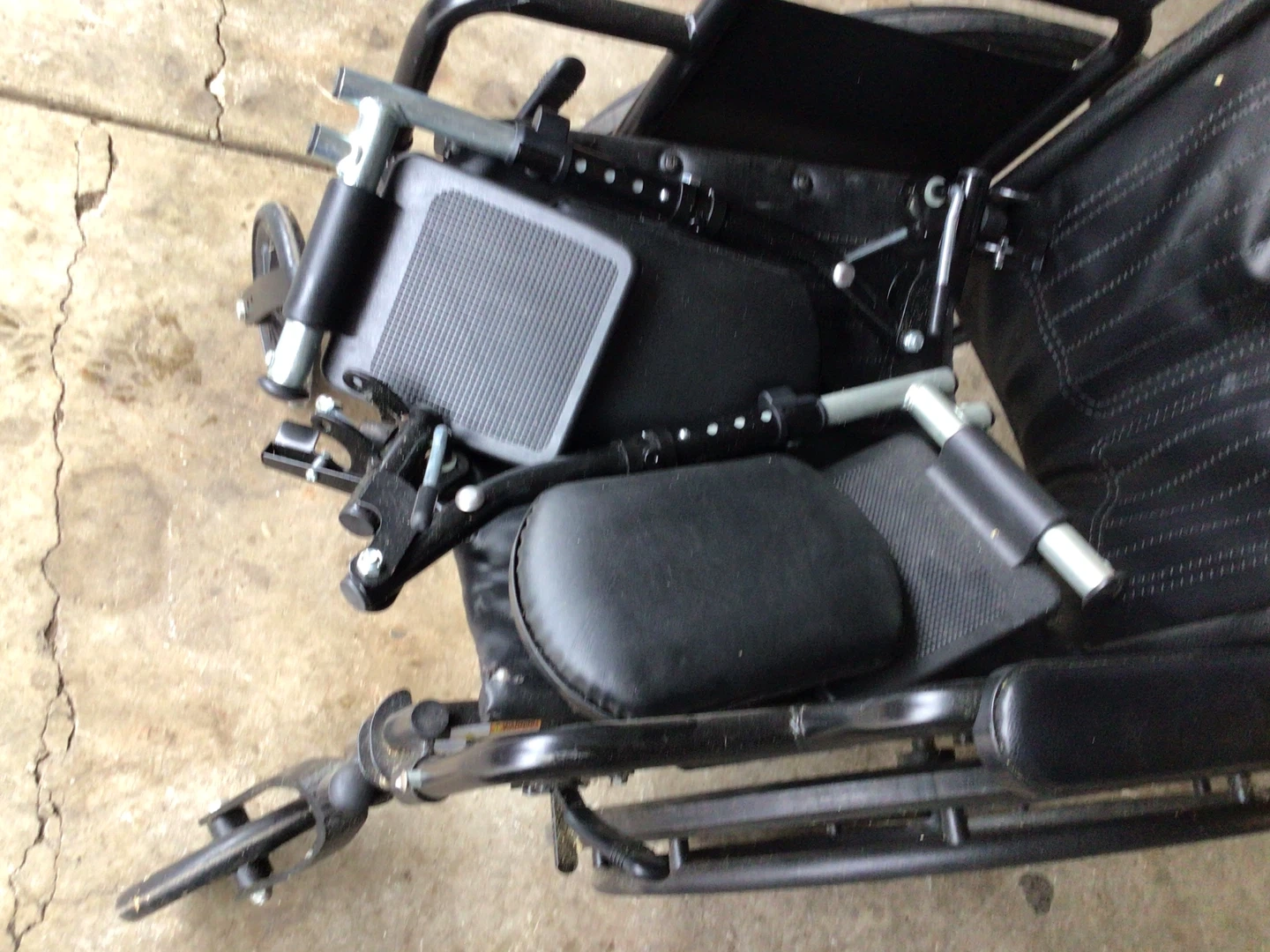Wheelchair Transport…300lb Capacity 18"Wide Fixed footrest each….please take a good look to the pictures…since there’s a very small tear on the front side corner on the chair…..( this is a brand new item it does look like used item because it’s very dusty it’s been on the garage for a long time…) any concerns feel free to send me a message…thanks.