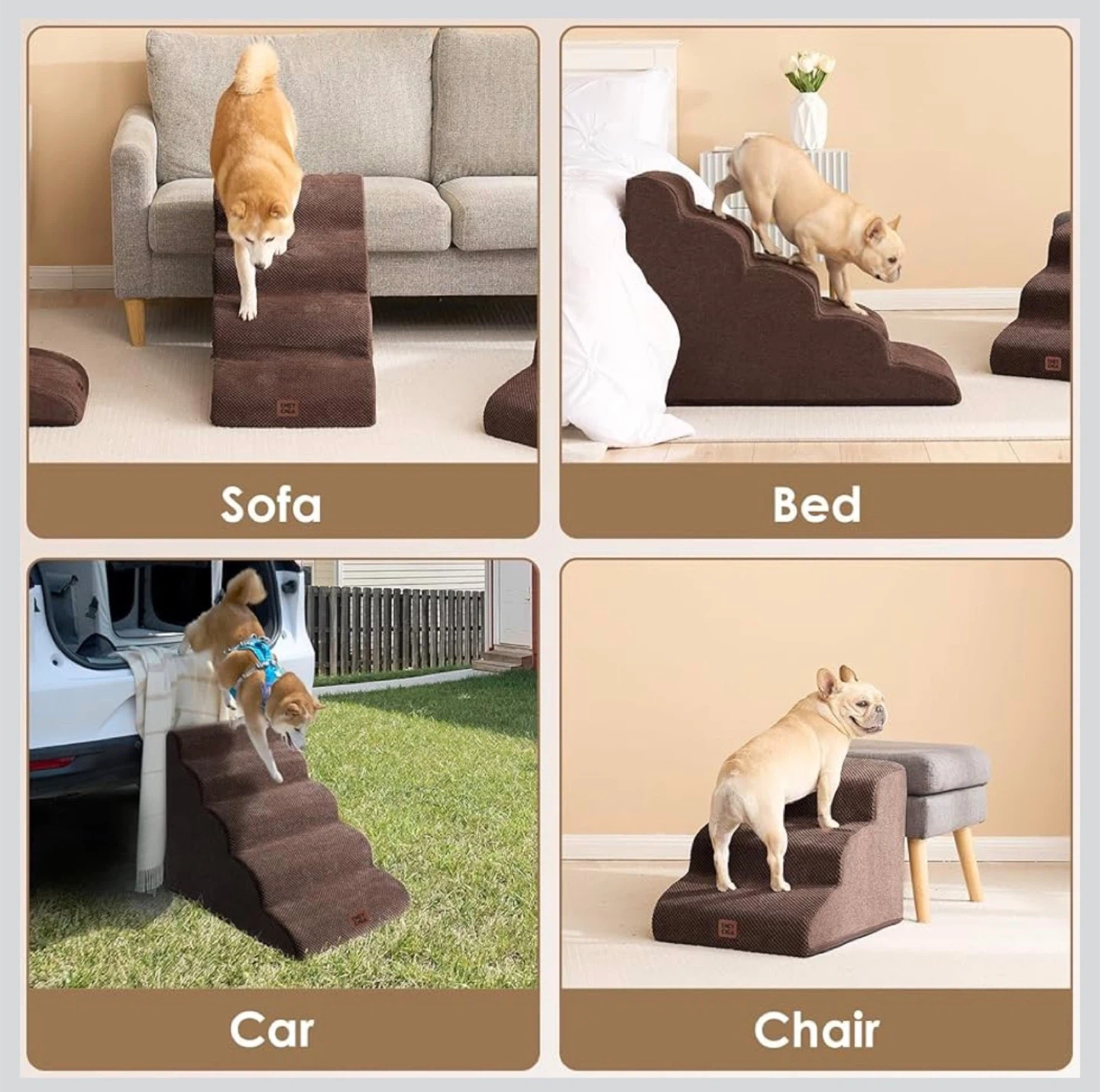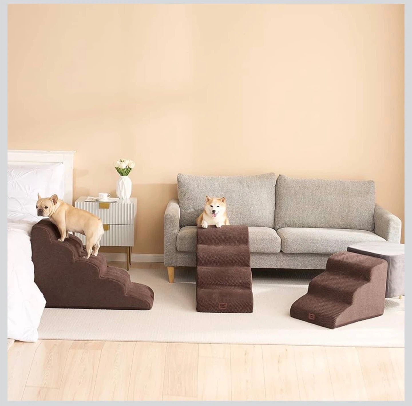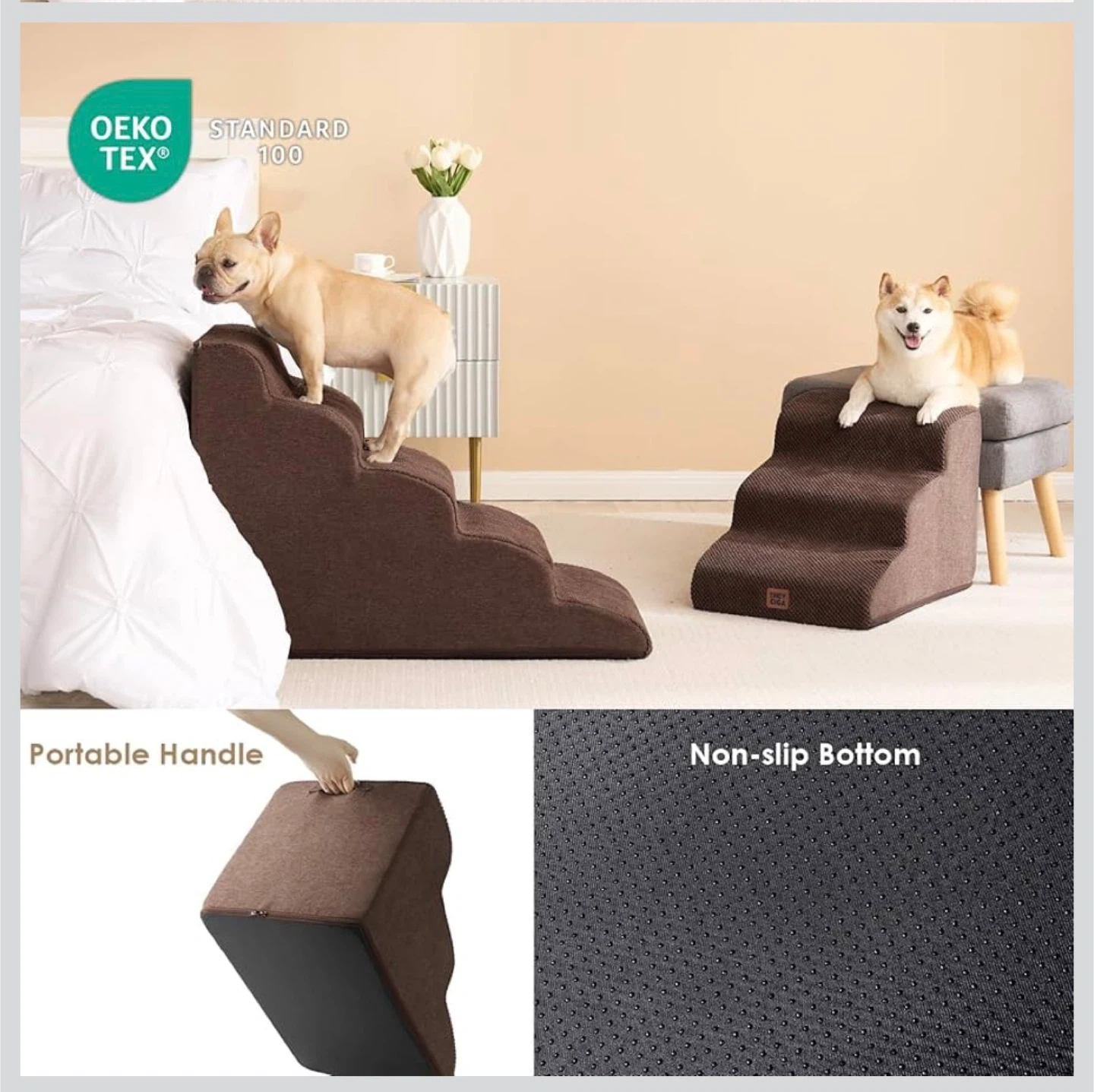 EHEYCIGA Curved Dog Stairs Ramp. 5-Step Dog Steps. Charcoal grey