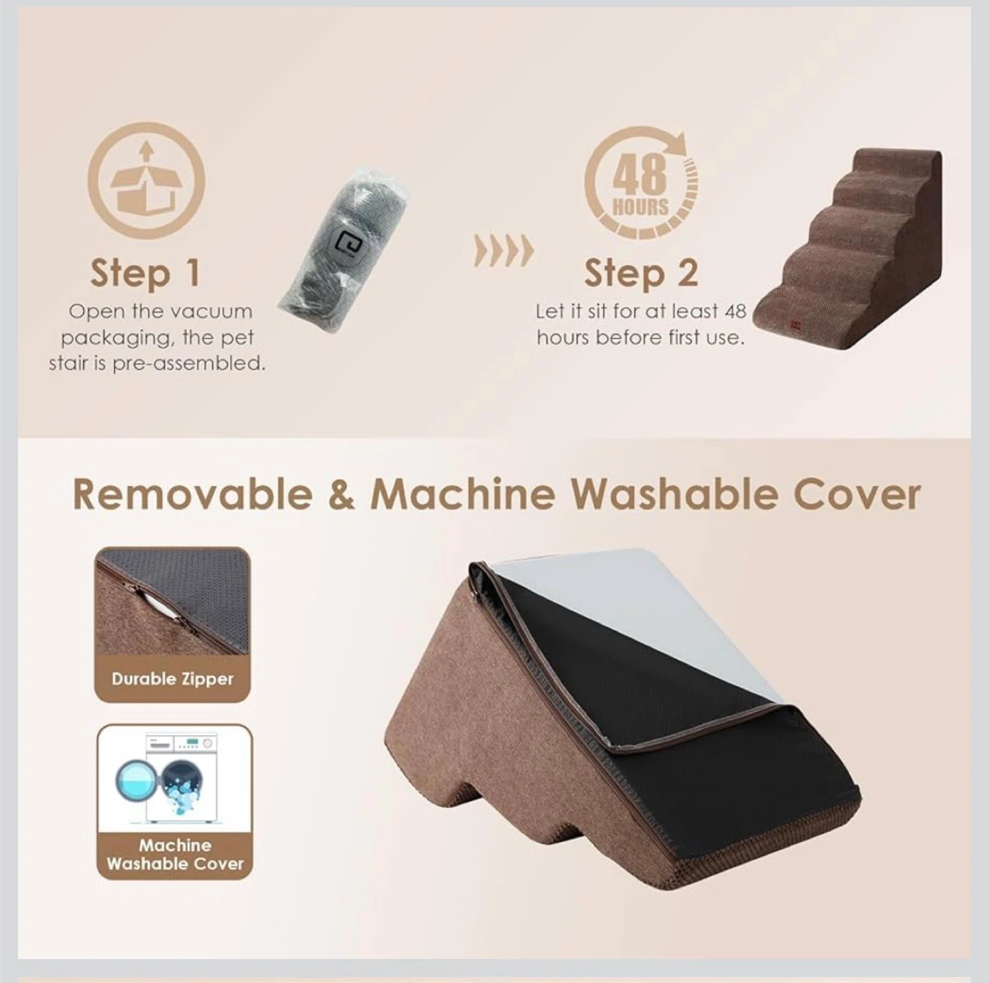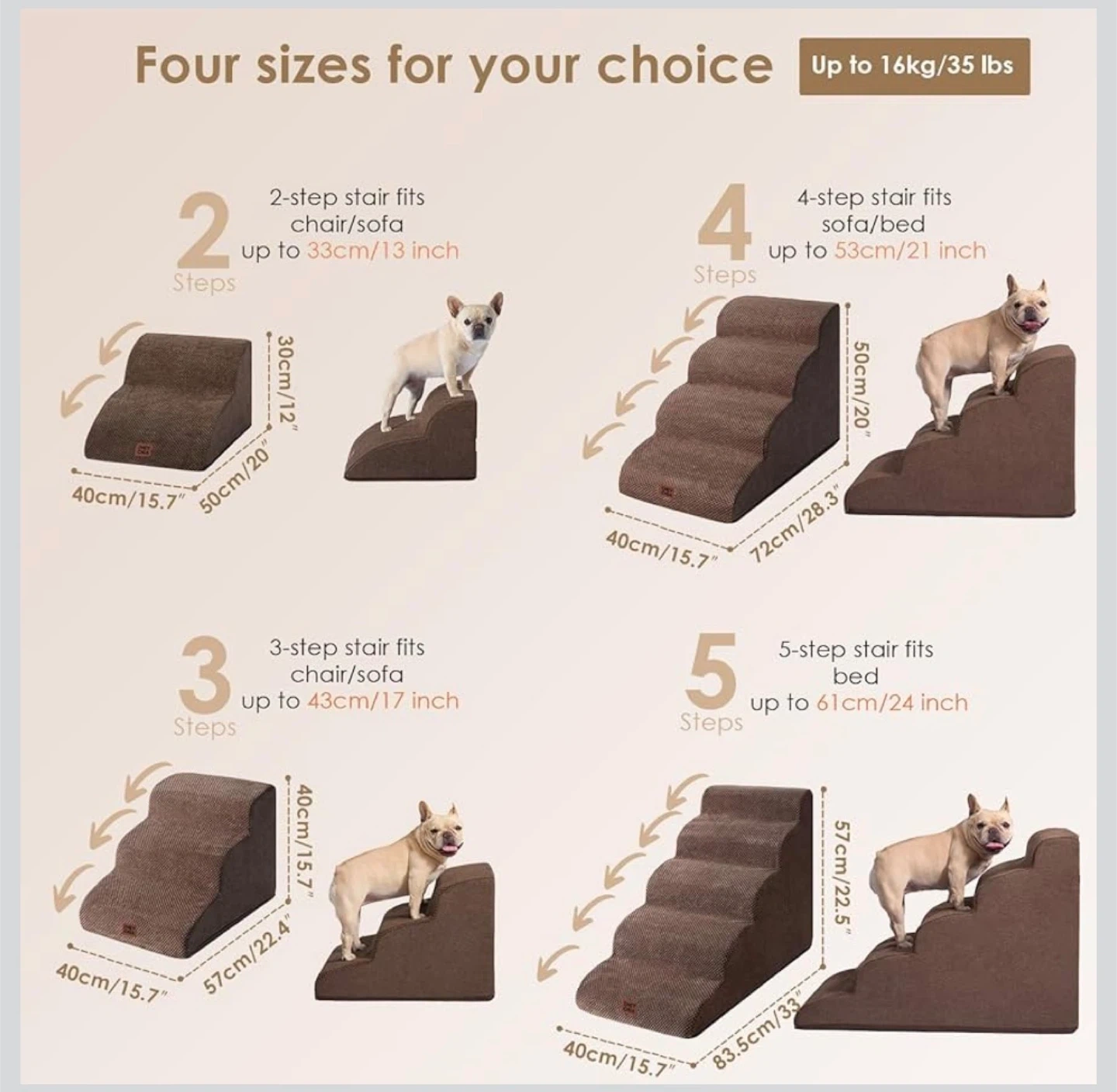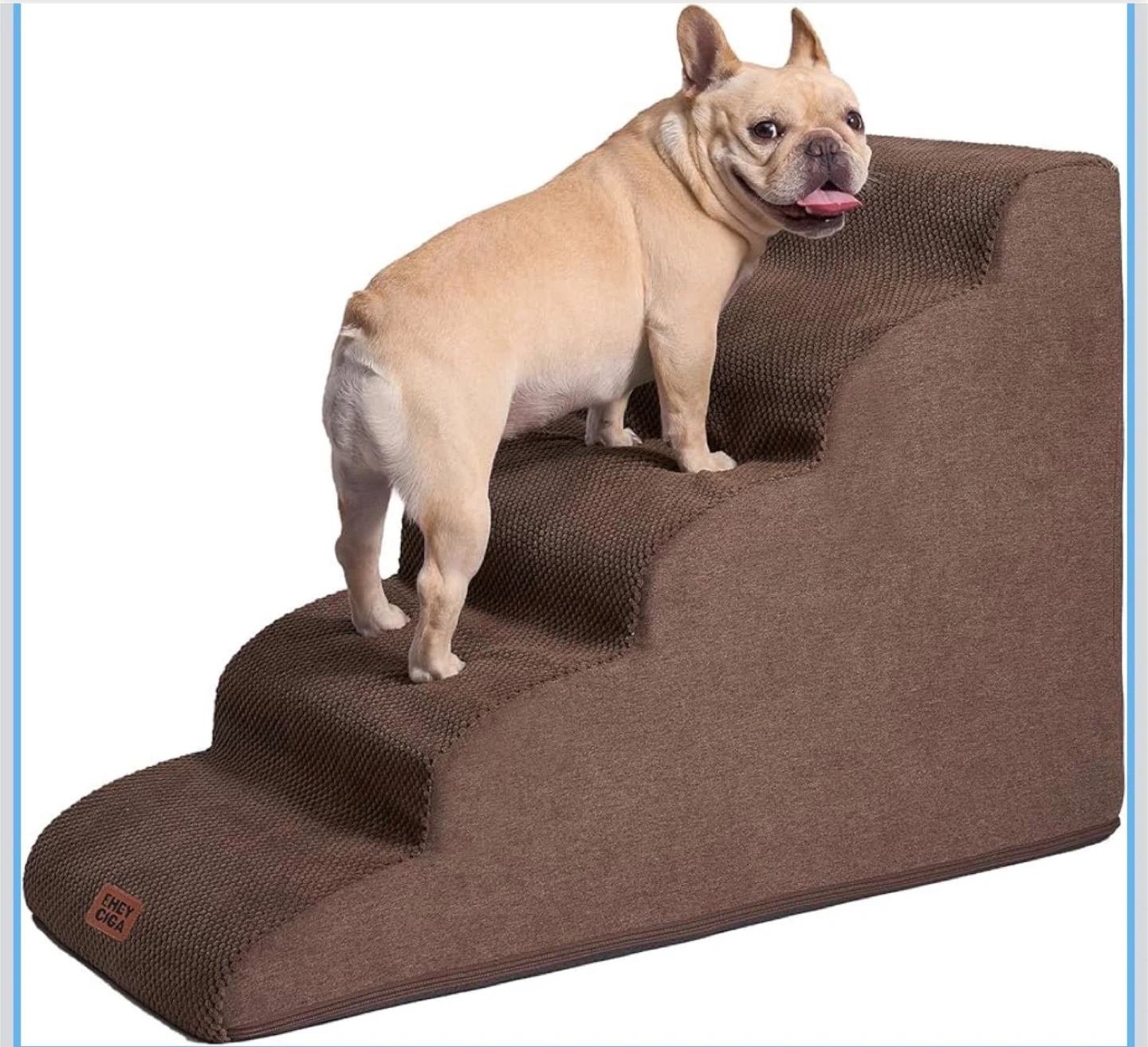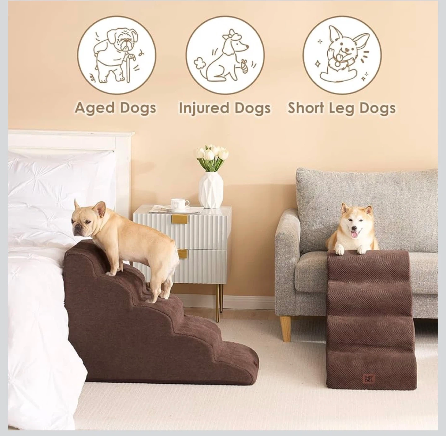 EHEYCIGA Curved Dog Stairs Ramp. 5-Step Dog Steps. Charcoal grey