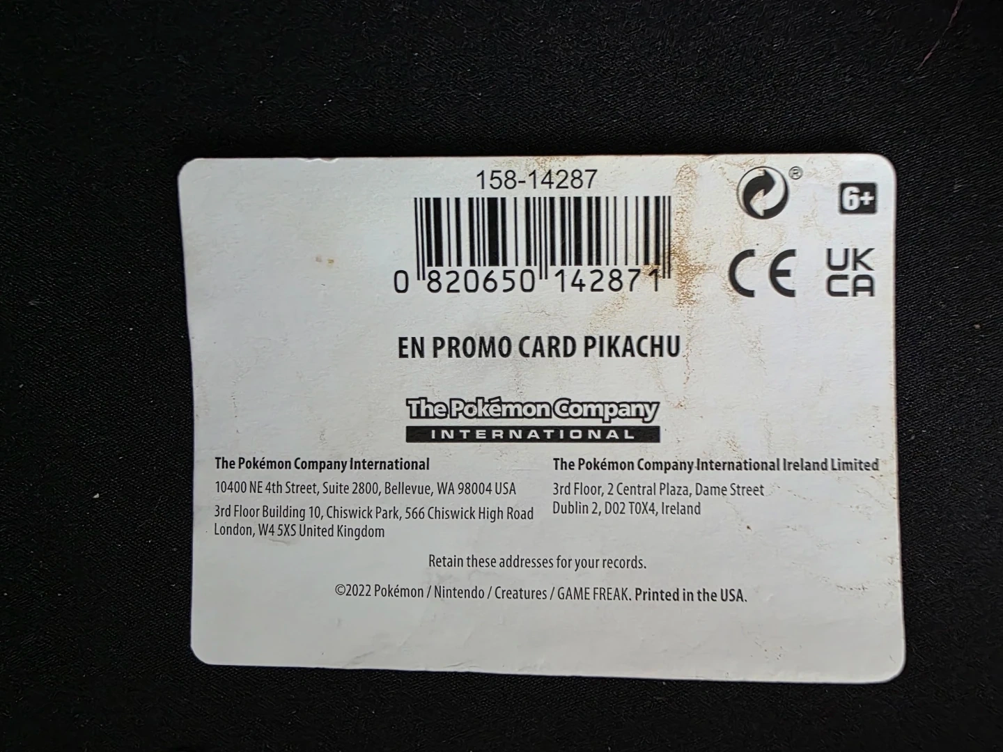 Pokemon Pikachu Trading Card,slightly damaged,limited edition