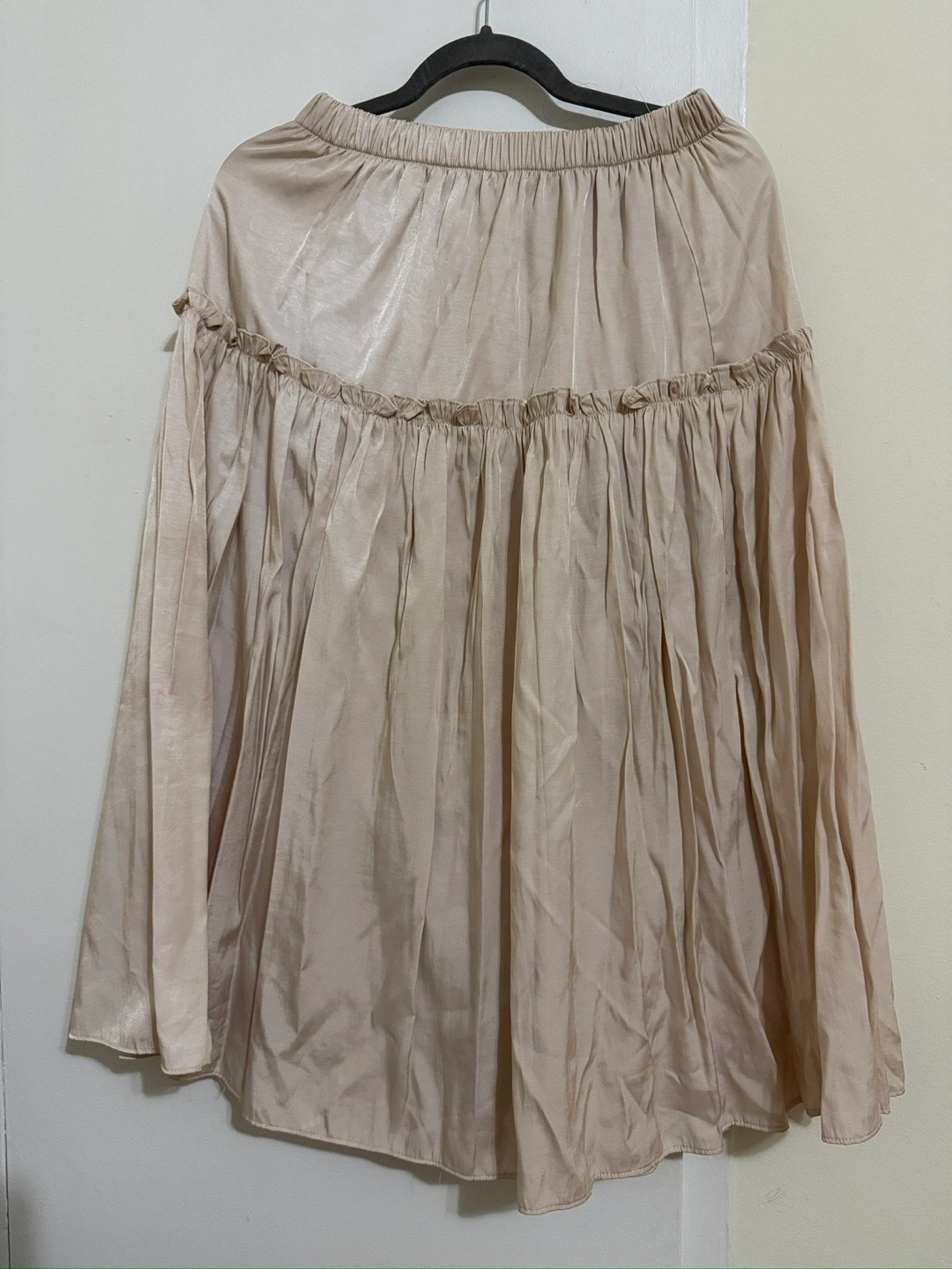 Champagne Off-the-Shoulder Ruffle Midi Skirt