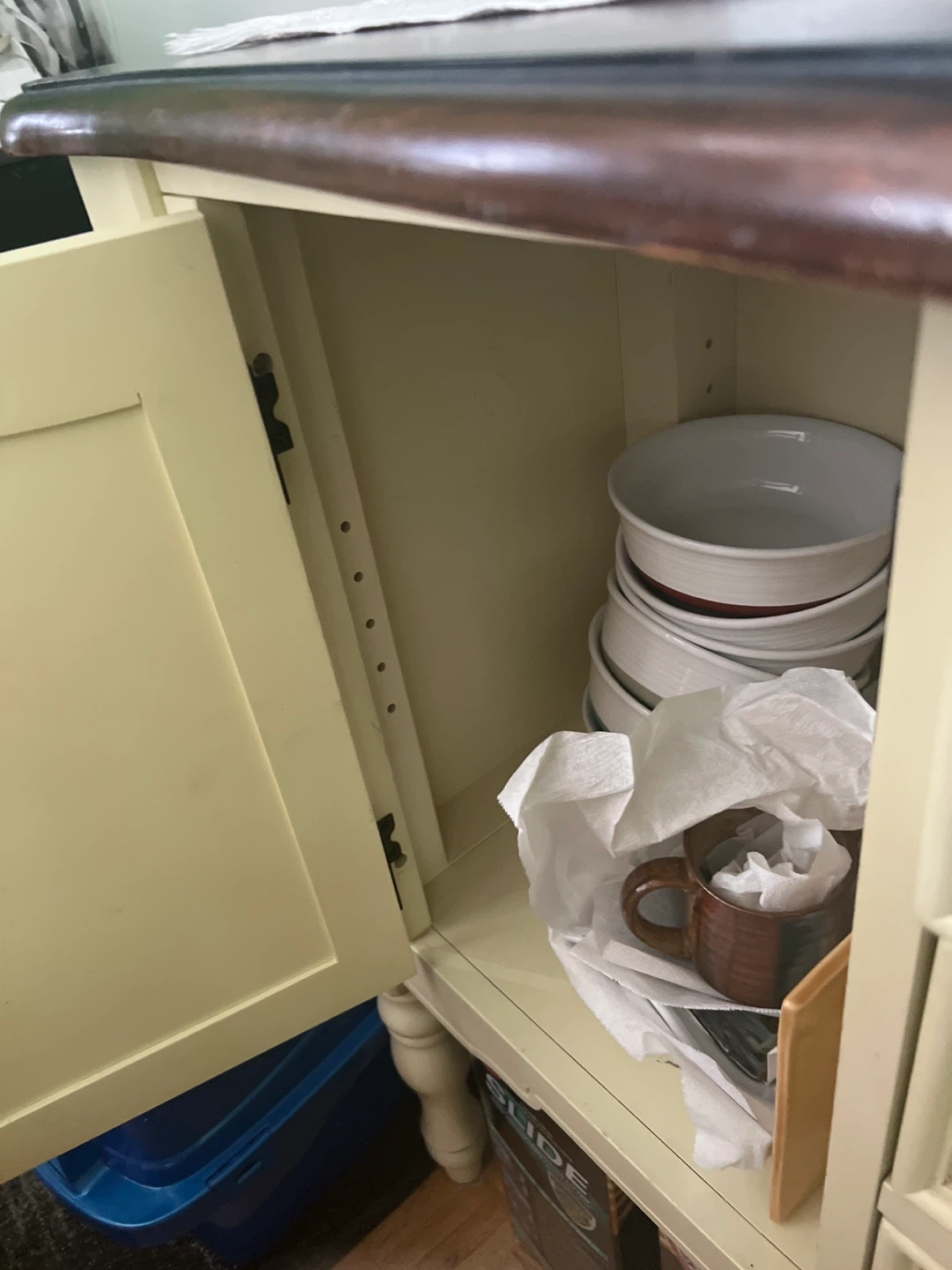 This buffet features a cream-coloured body with a dark wood top and detailing. It has multiple drawers and cabinet doors for storage. Dimensions are approximately 52 inches long and 37 inches high.