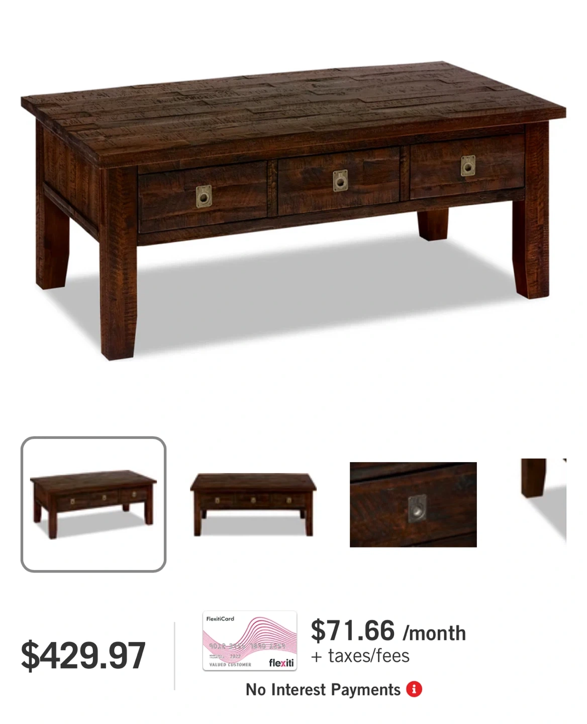 Rustic Coffee Table - Dark Brown Wood