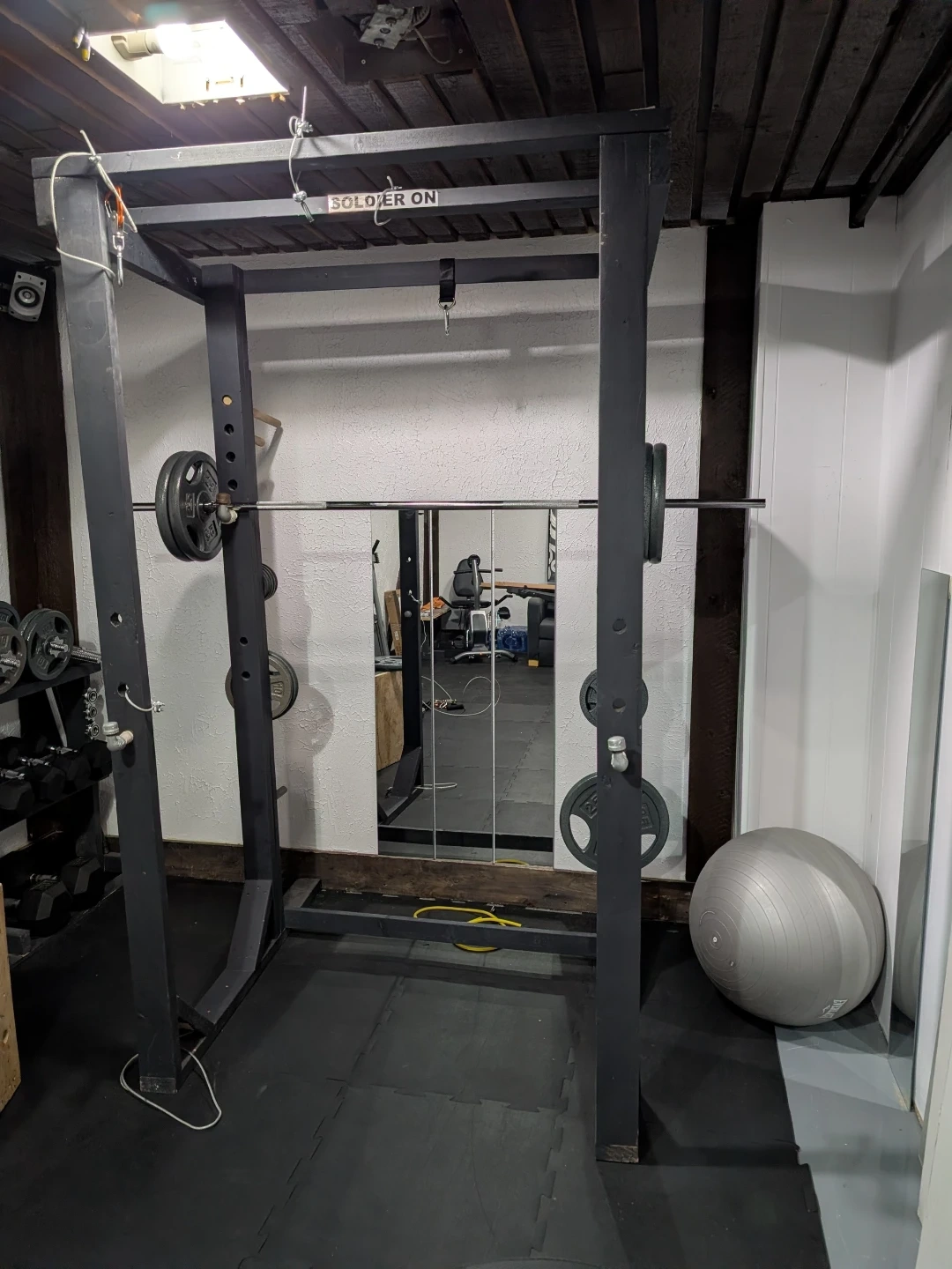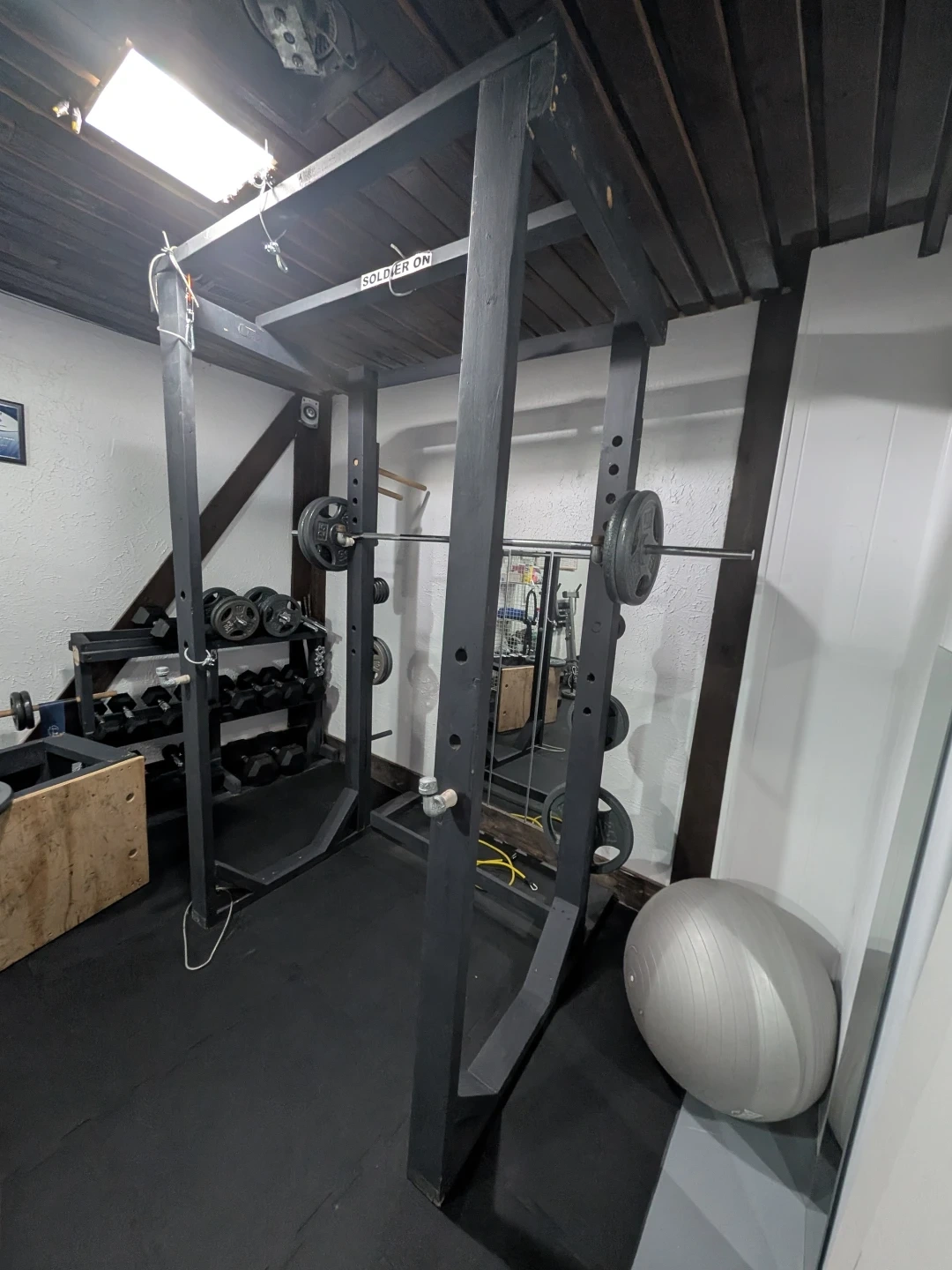 Built it during covid when equipment was scarce. And have used it for years. Can easily hold 250lbs. And probably more I just never lifted that heavy.