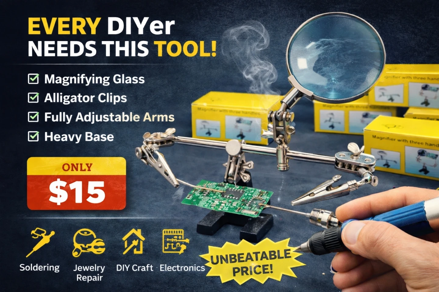This Helping Hands Magnifier Tool gives you stability, precision, and freedom β all in one compact tool.