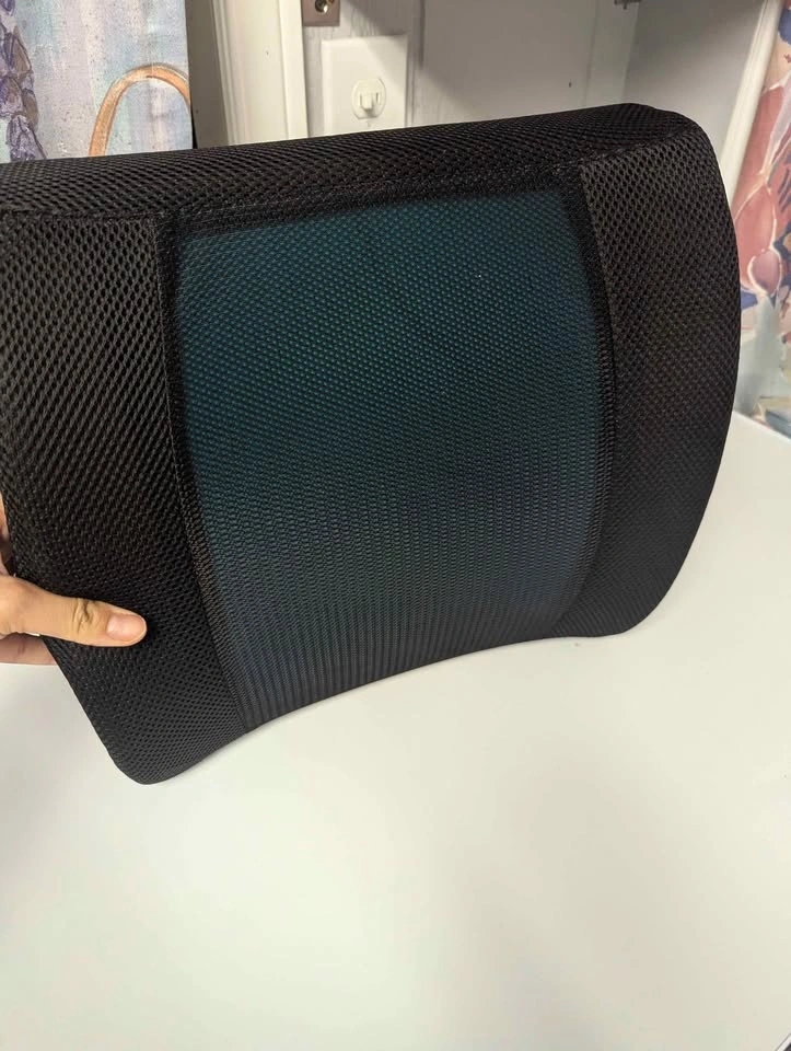 Comfortable ergonomic lumbar support cushion designed to improve posture and reduce lower back strain while sitting. Features breathable mesh fabric with firm yet comfortable support. Works great on wooden chairs, office chairs, or anywhere you need extra back support. Pickup in Port Coquitlam.