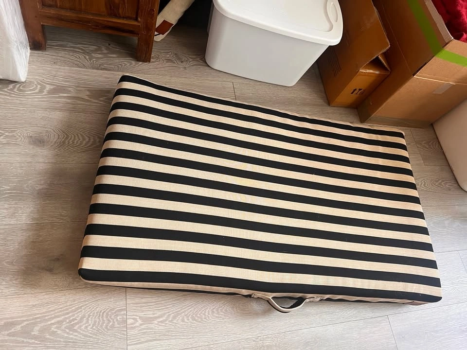We don't have a dog, we just got 2 of those large bed to use in forts we made in the living room (for ourselves. As in 2 adults lol. We did not have kids at the time lol.) We put those down, put a blanket on it and it was awesome and comfy lol. So because no pets were ever on it, it's like new.