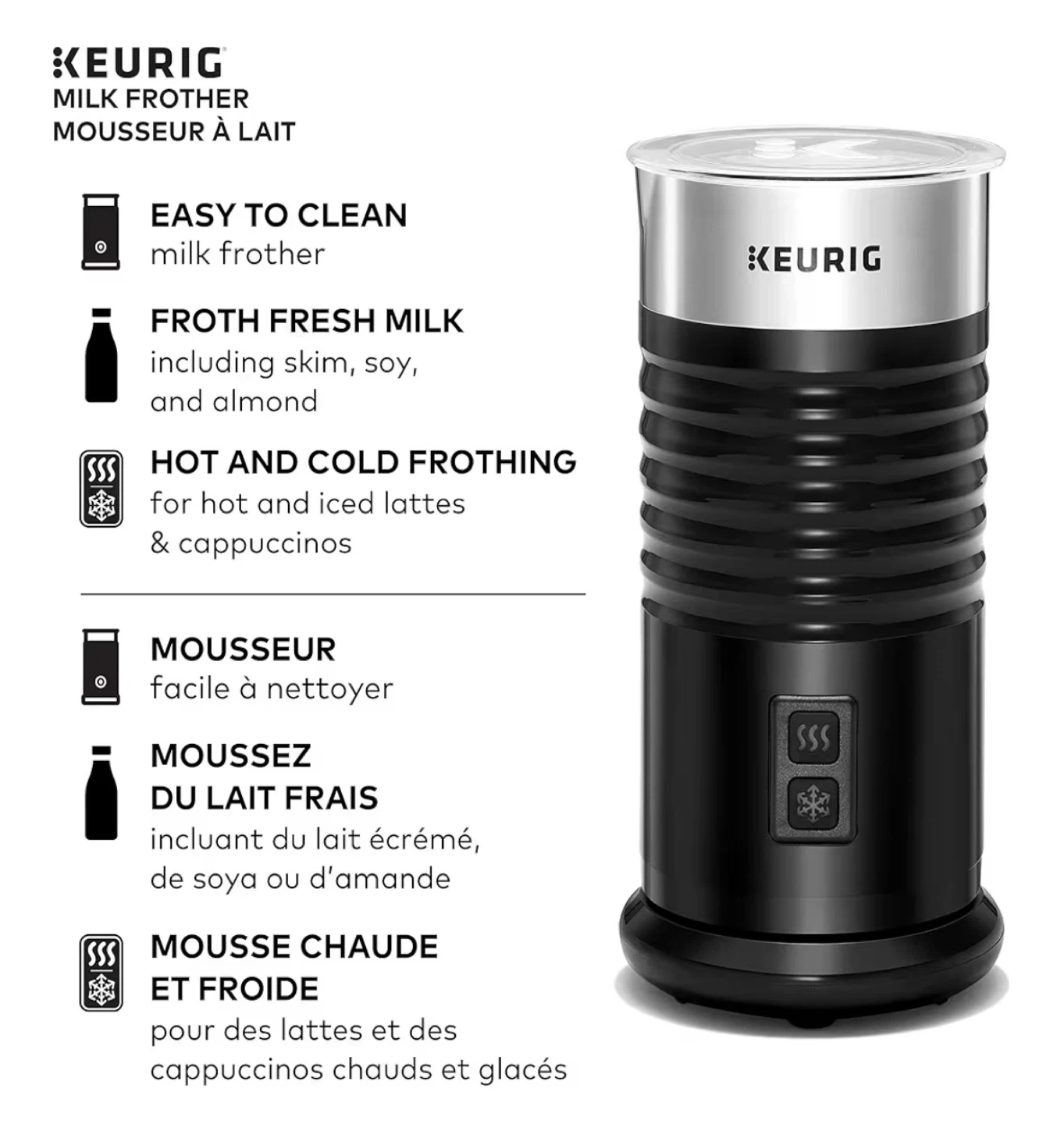 * Hot and Cold Frothing: Perfect for hot and iced