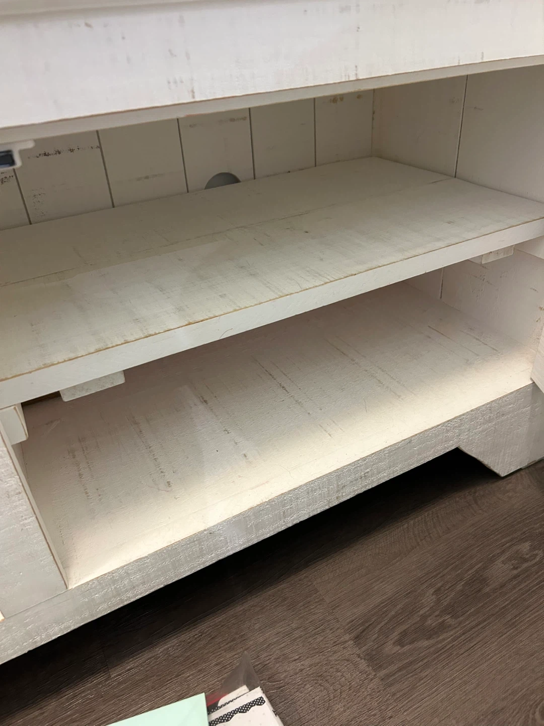 In used condition with visible wear and some scuffs inside (see photos). Still sturdy and functional — great for entryway, hallway, or extra storage.