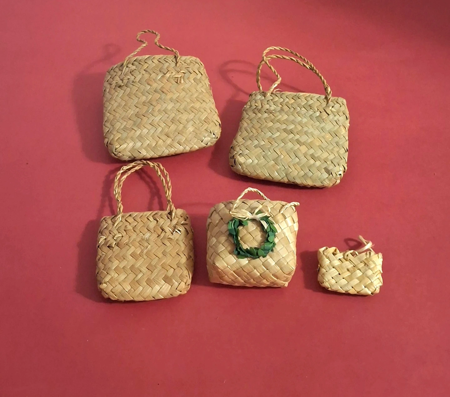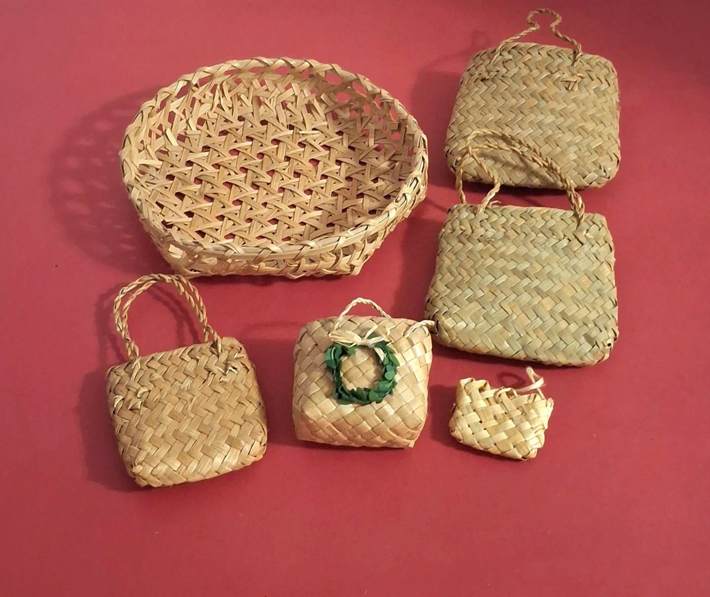 An assortment of beautiful new wicker and straw items including a bowl (18 cm diameter), and 5 small baskets in assorted sizes (3-11 cm) for just $1 - $3 each. Or buy all 6 items for $12.