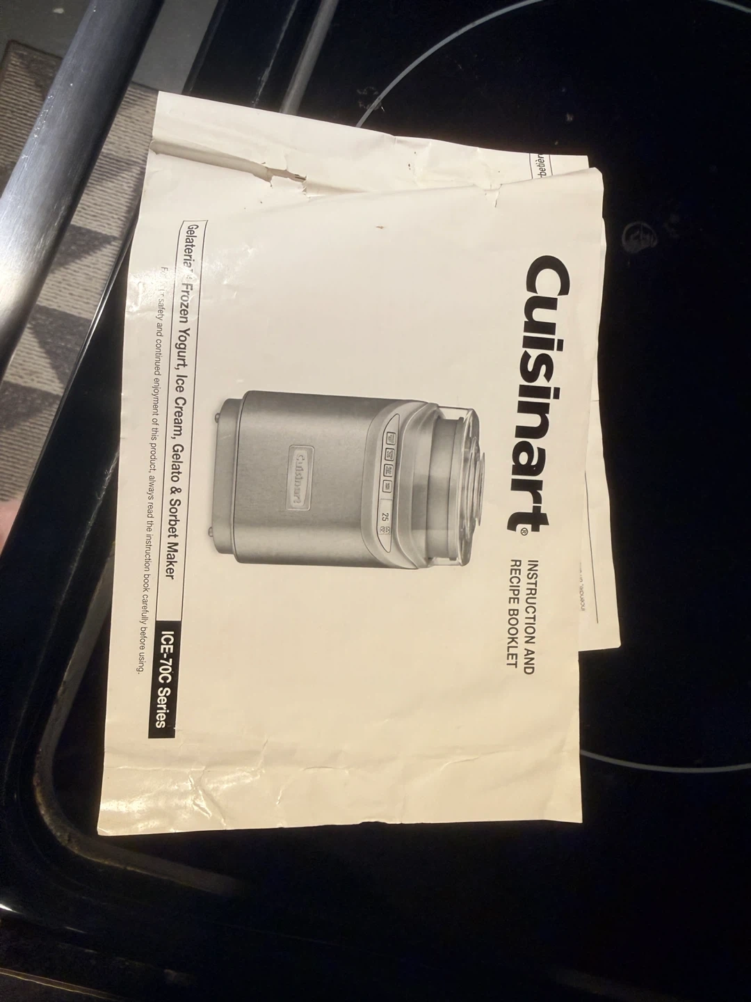 This Cuisinart ice cream, gelato, and sorbet maker is in good working order. It features a built-in compressor so no pre-freezing is needed. Comes with the instruction and recipe booklet.
