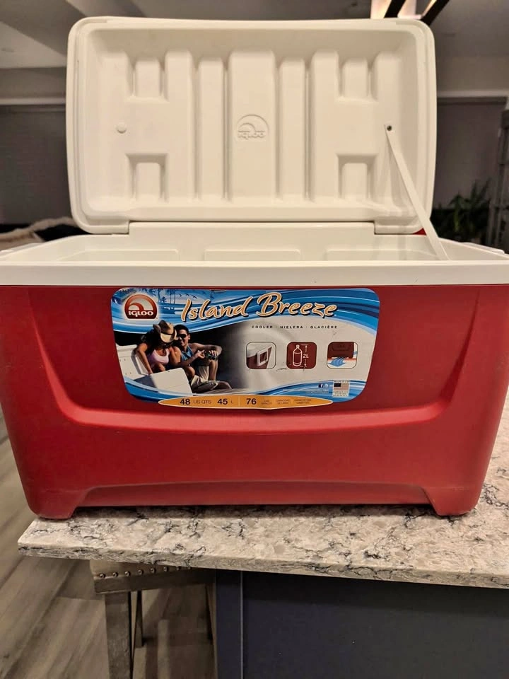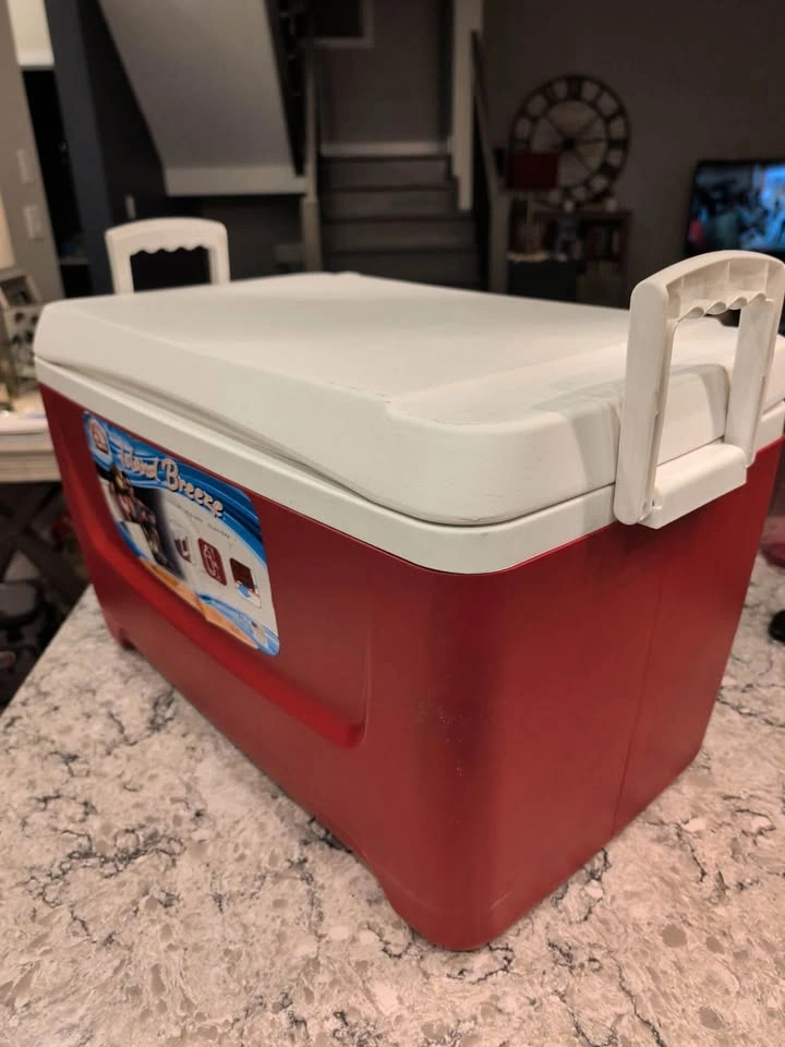 10Slightly stained inside but other than that it’s in great condition. Can hold 76 cans! Can also be picked up in Burlington if needed.
