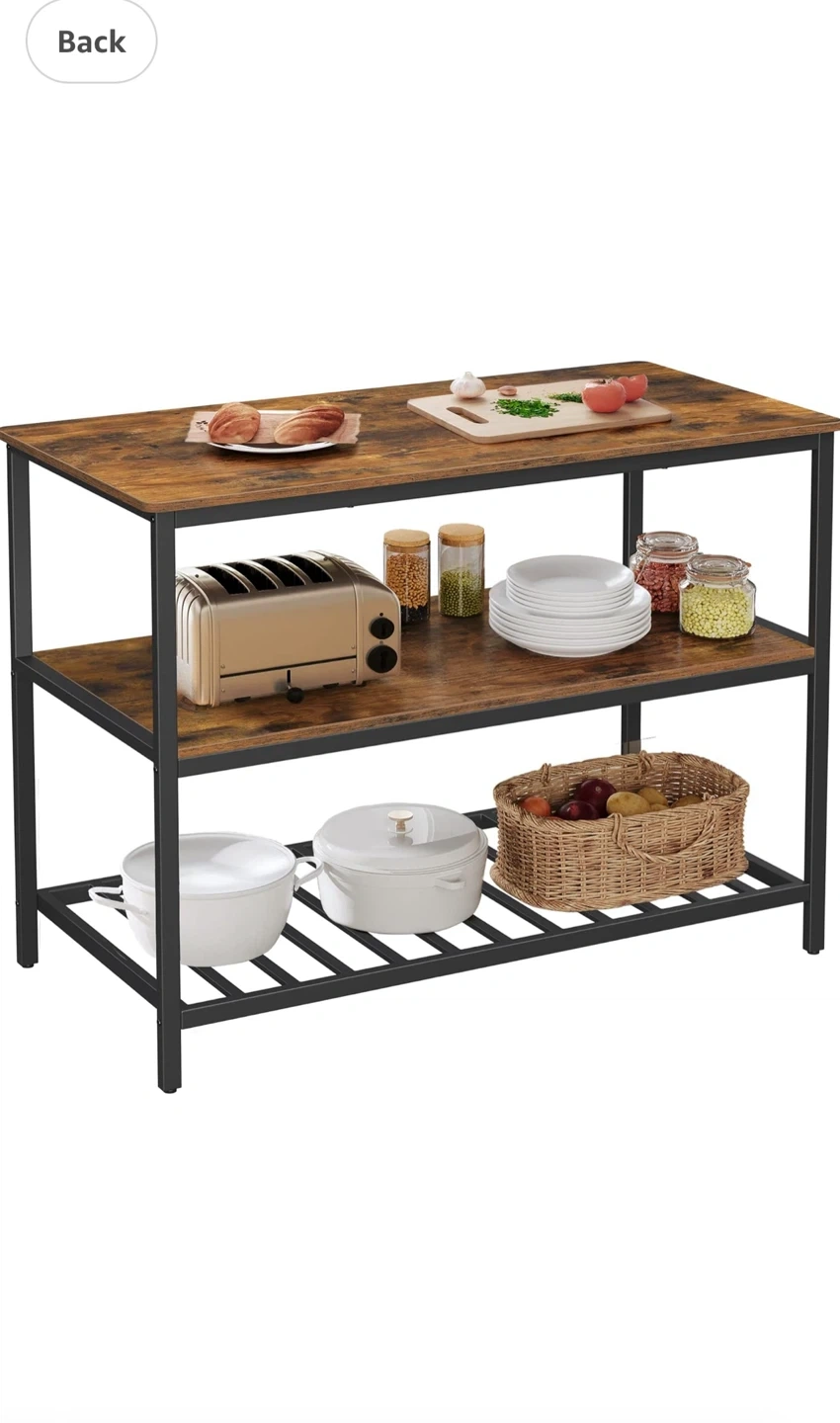 Brand new Kitchen Island with 3 Shelves, 47.2 Inches Kitchen Shelf with Large Worktop, Stable Steel Structure, Industrial, Easy to Assemble, Rustic Black