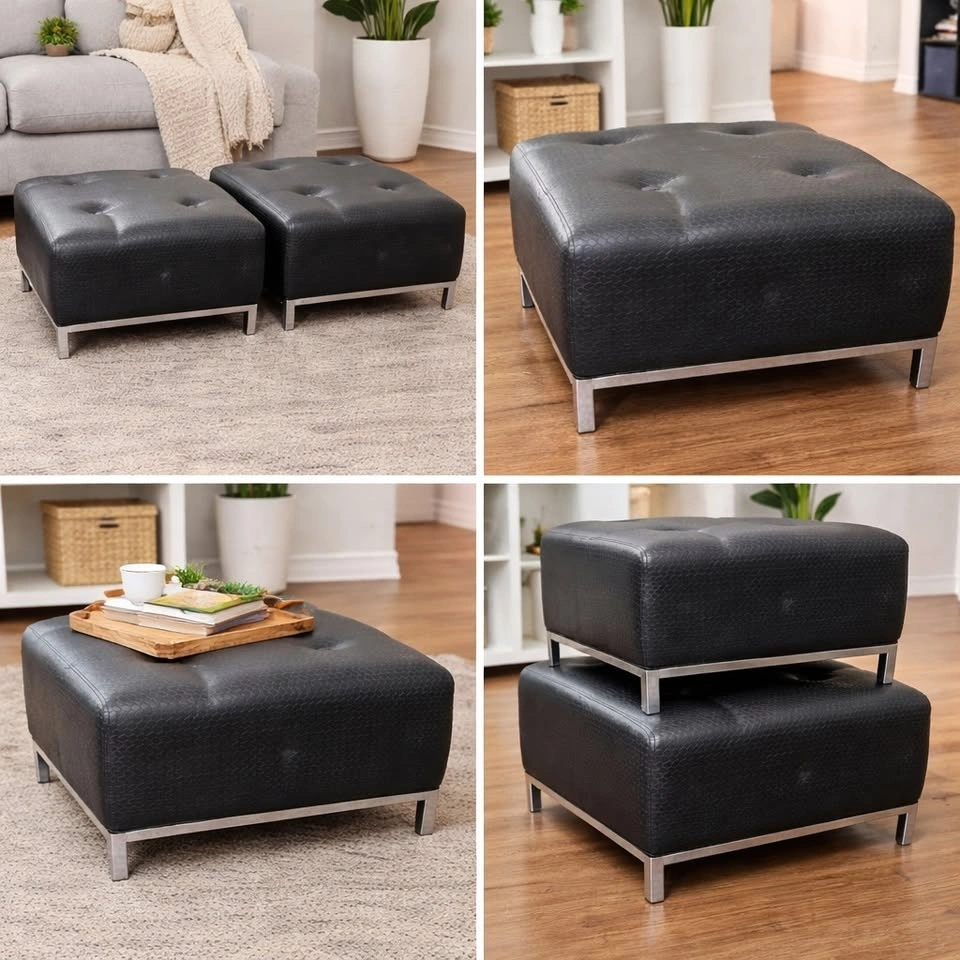 Elevate your living space with this stunning matching pair of Safavieh Sienna Square Ottomans. These are high-quality designer pieces inspired by the iconic modernist architecture of Mies van de Rohe. Get the designer look for a fraction of the price!