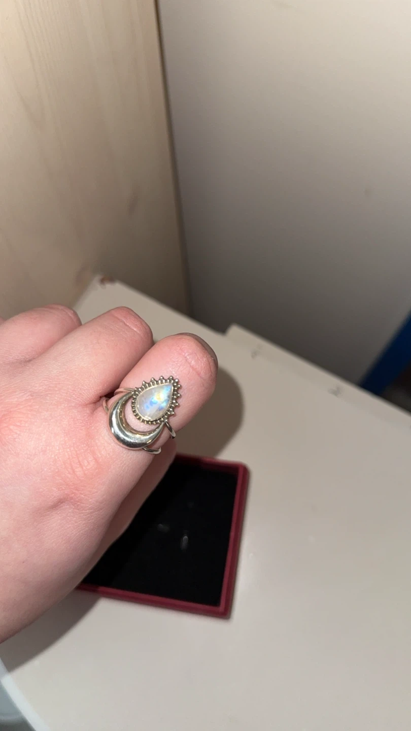 925 Sterling Silver rainbow moonstone ring