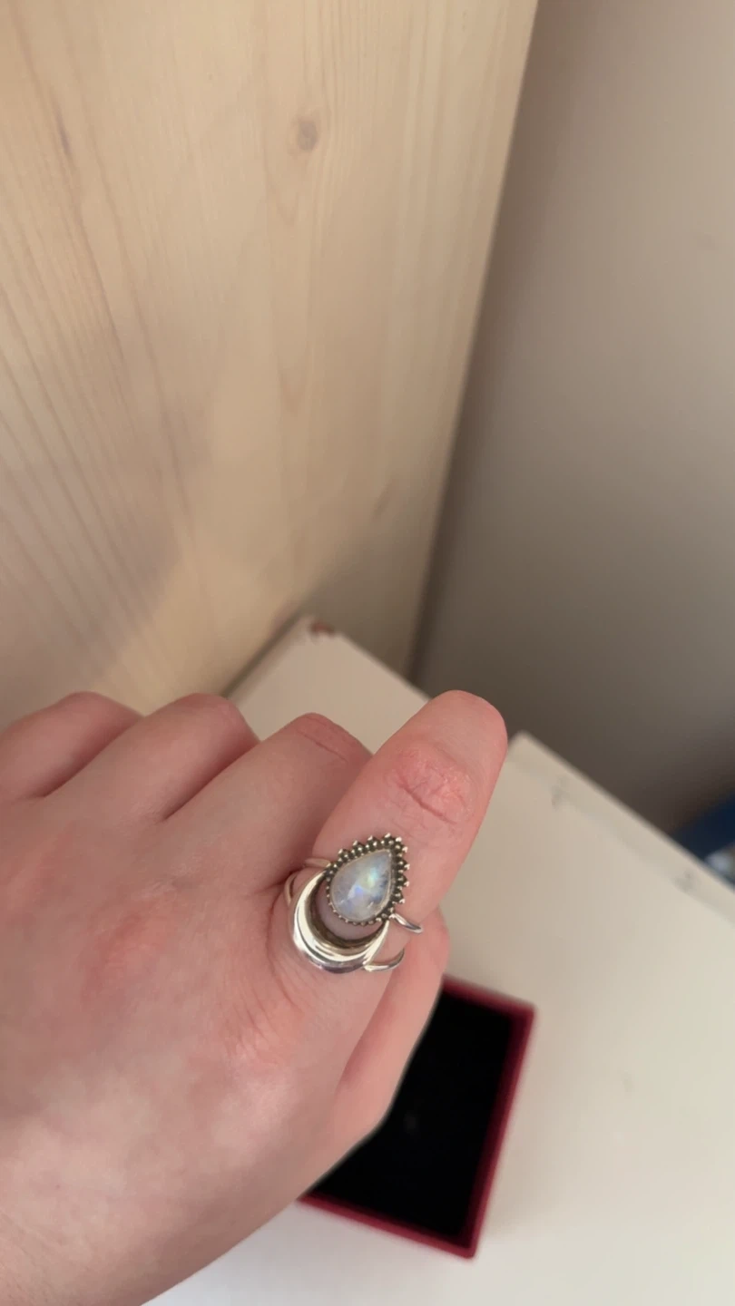 925 Sterling Silver rainbow moonstone ring