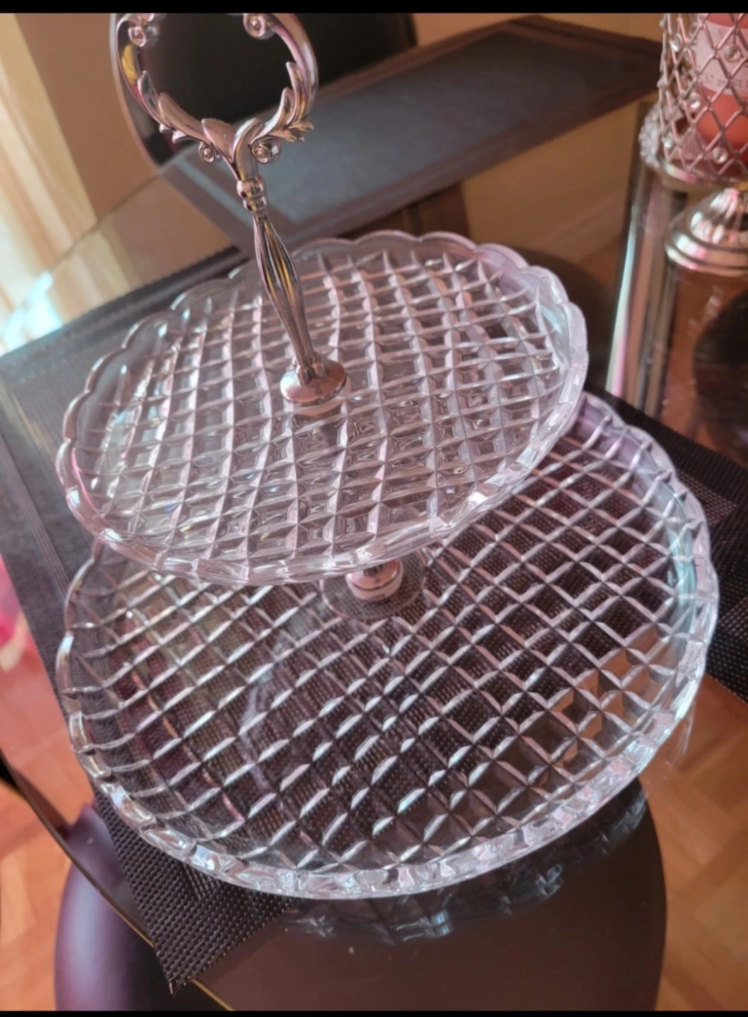 1 / 31 / 3Buy & Sell2-Tier Glass Serving Stand2-Tier Glass Serving Stand$12Elegant two-tier serving stand for desserts or appetizers. Clear glass plates feature a diamond-cut pattern. Metal handle for easy carrying.ConditionNewWHERE TO MEETPharmacy AvenueView MapSELLERverifiedAleenaClairlea - Birchmount39233 reviews0 chats·1 favorites·32 viewsSEND CHAT TO SELLERHi Aleena! I’m interested in your listing.Hi Aleena! I’m interested in your listing.Get the Karrot app to chatSign In to chat
