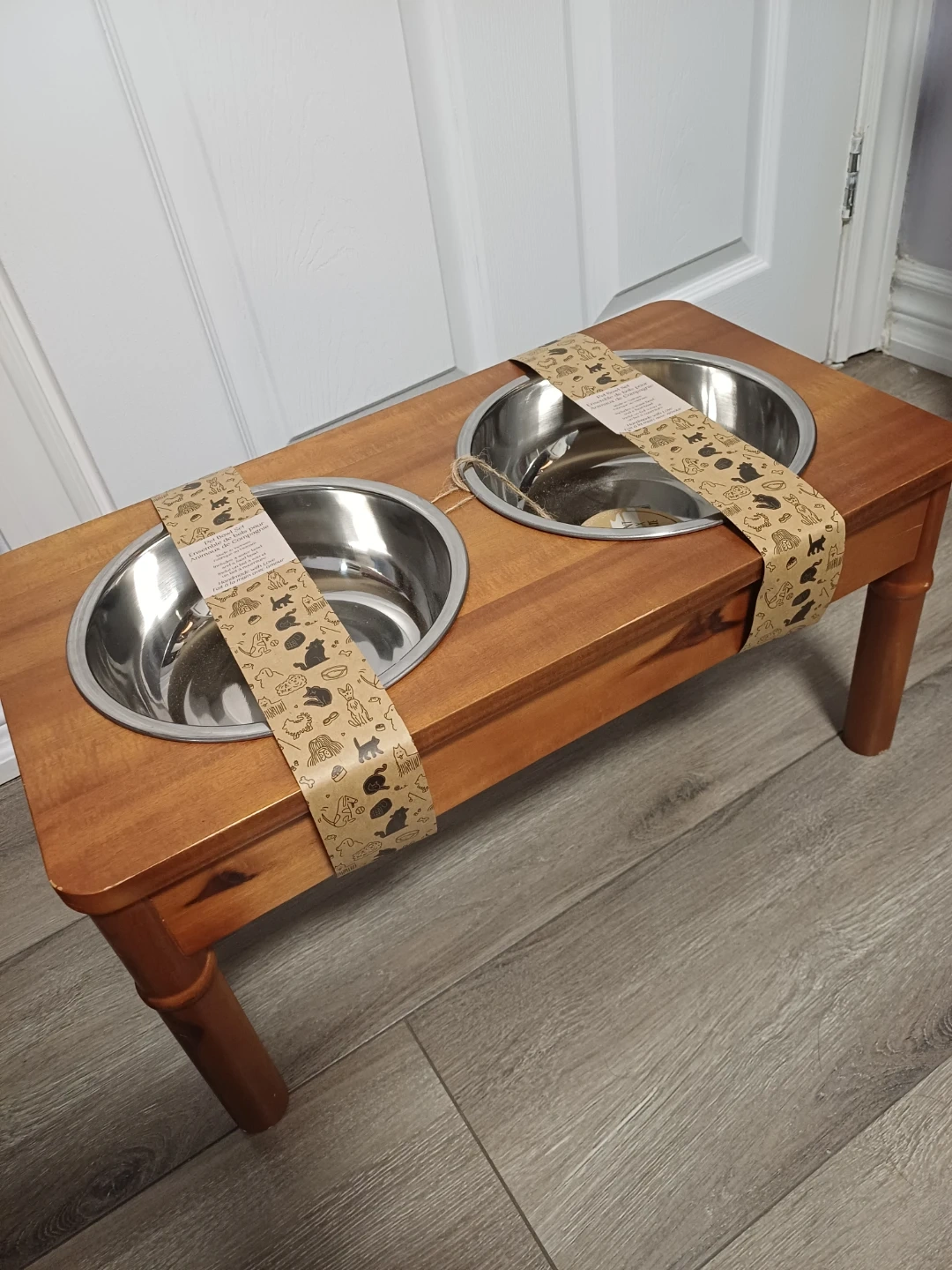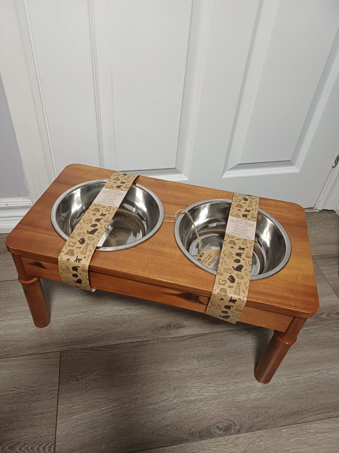 Selling a brand new...Raised feeder with two stainless steel bowls.