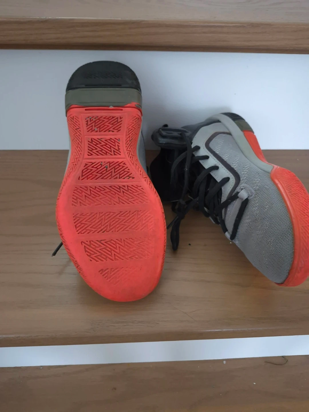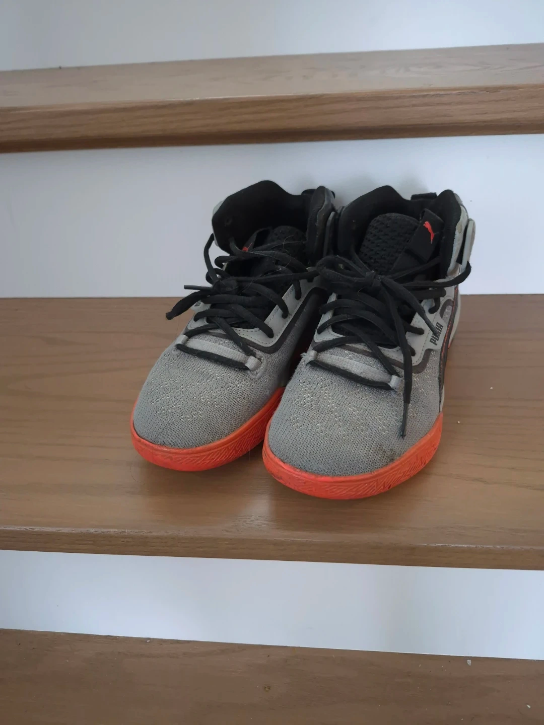 Selling a pair of Puma basketball shoes in size 5 (US). They are grey and red. Good for playing ball or just for everyday wear