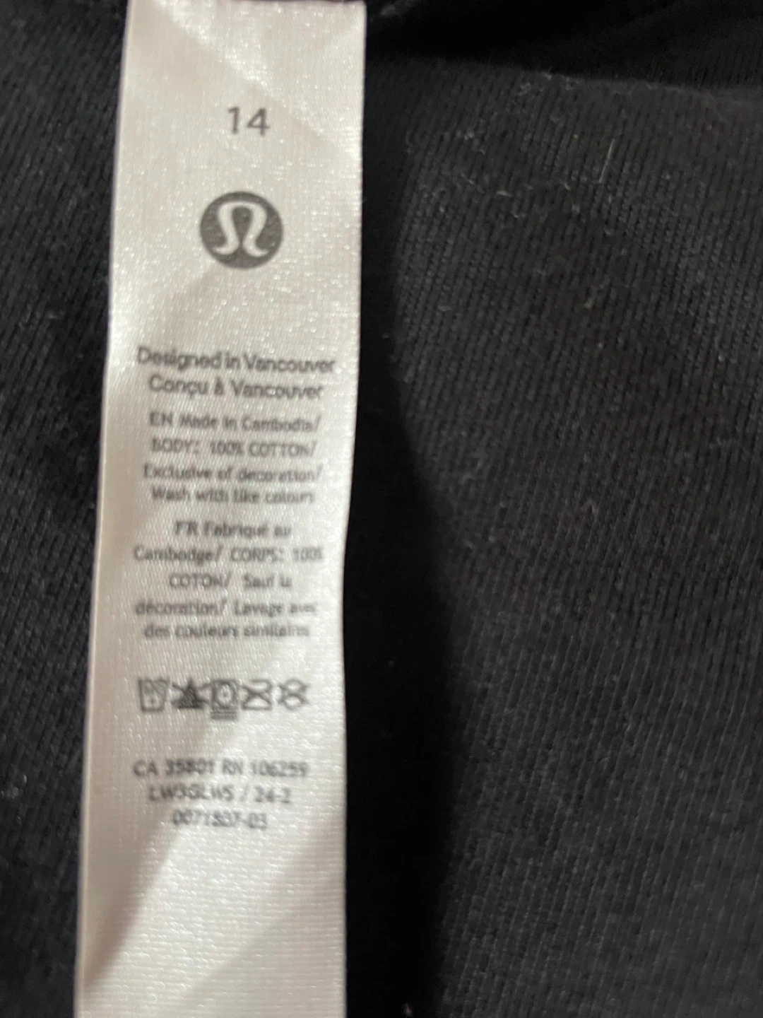 This is a Lululemon Relaxed-Fit Cotton Jersey T-Shirt in black. It's made from 100% cotton jersey fabric. The shirt features a relaxed fit and hip length. It's designed for comfort and breathability.