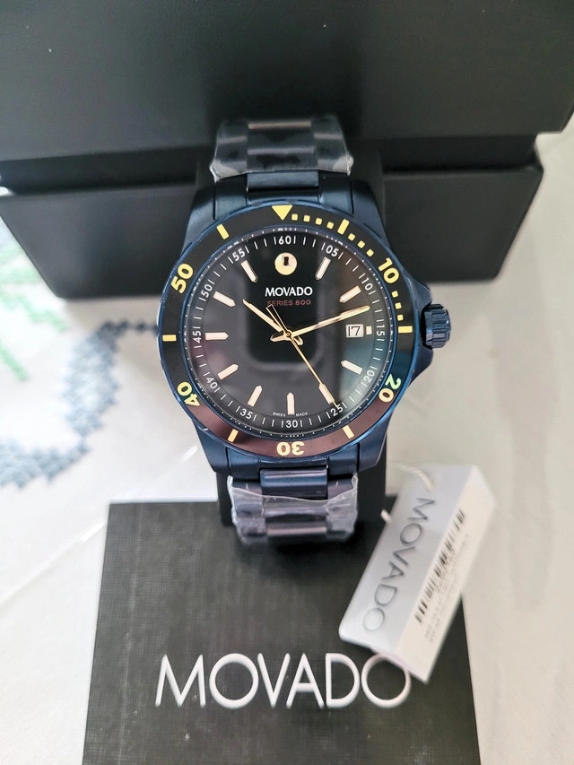 Movado Men's Series 800 Black Dial Blue Steel Swiss Watch