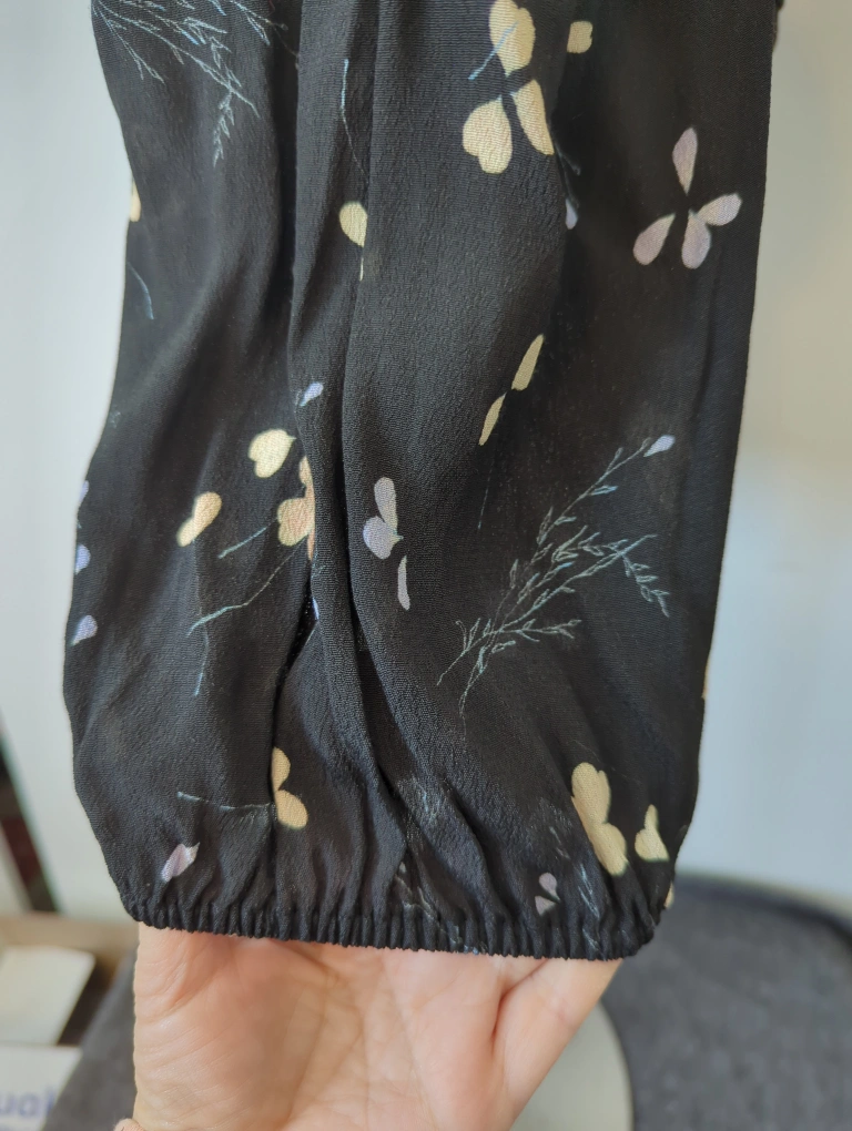 Wilfred Black Floral Puff Sleeve Crop Top - Size Small