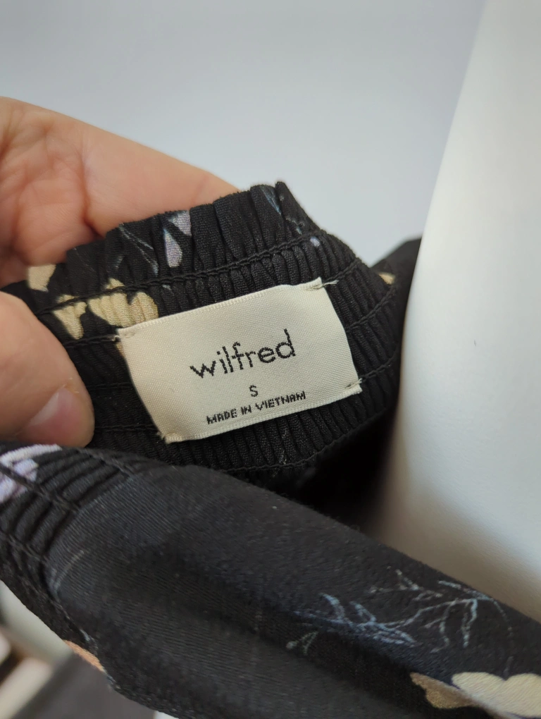 Wilfred Black Floral Puff Sleeve Crop Top - Size Small