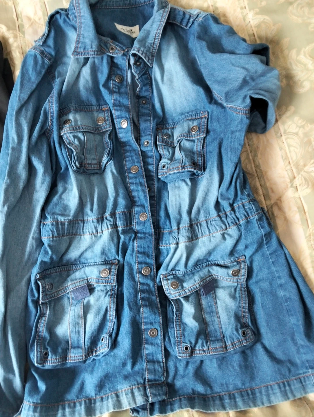 Lightweight blue denim jacket with multiple front pockets. Button-up closure. A versatile layering piece for any season.