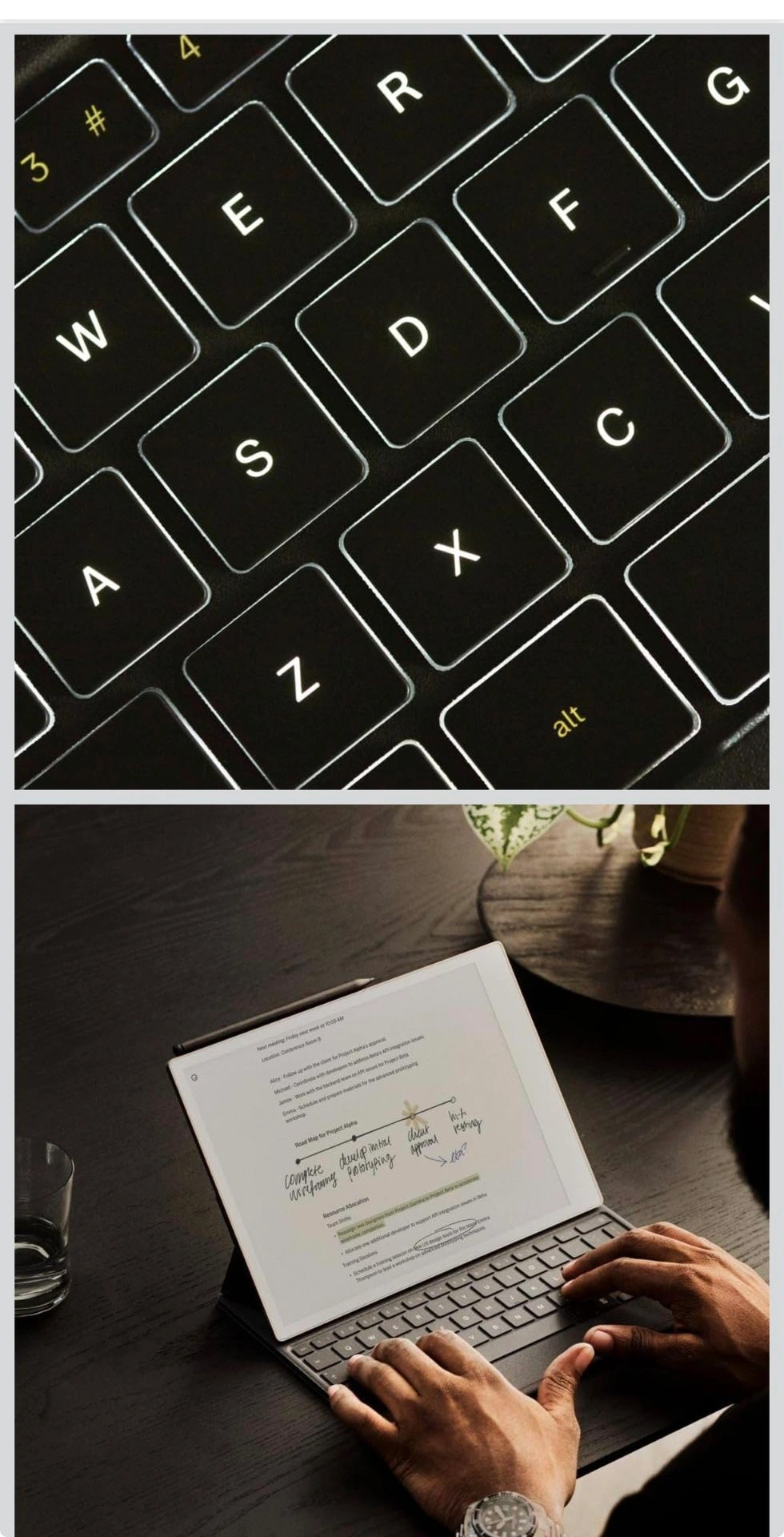 Add comfortable, focused typing to your paper tablet with a slim, tactile keyboard. When the keyboard isn’t in use, it neatly folds away, leaving a stylish cover to protect your paper tablet.