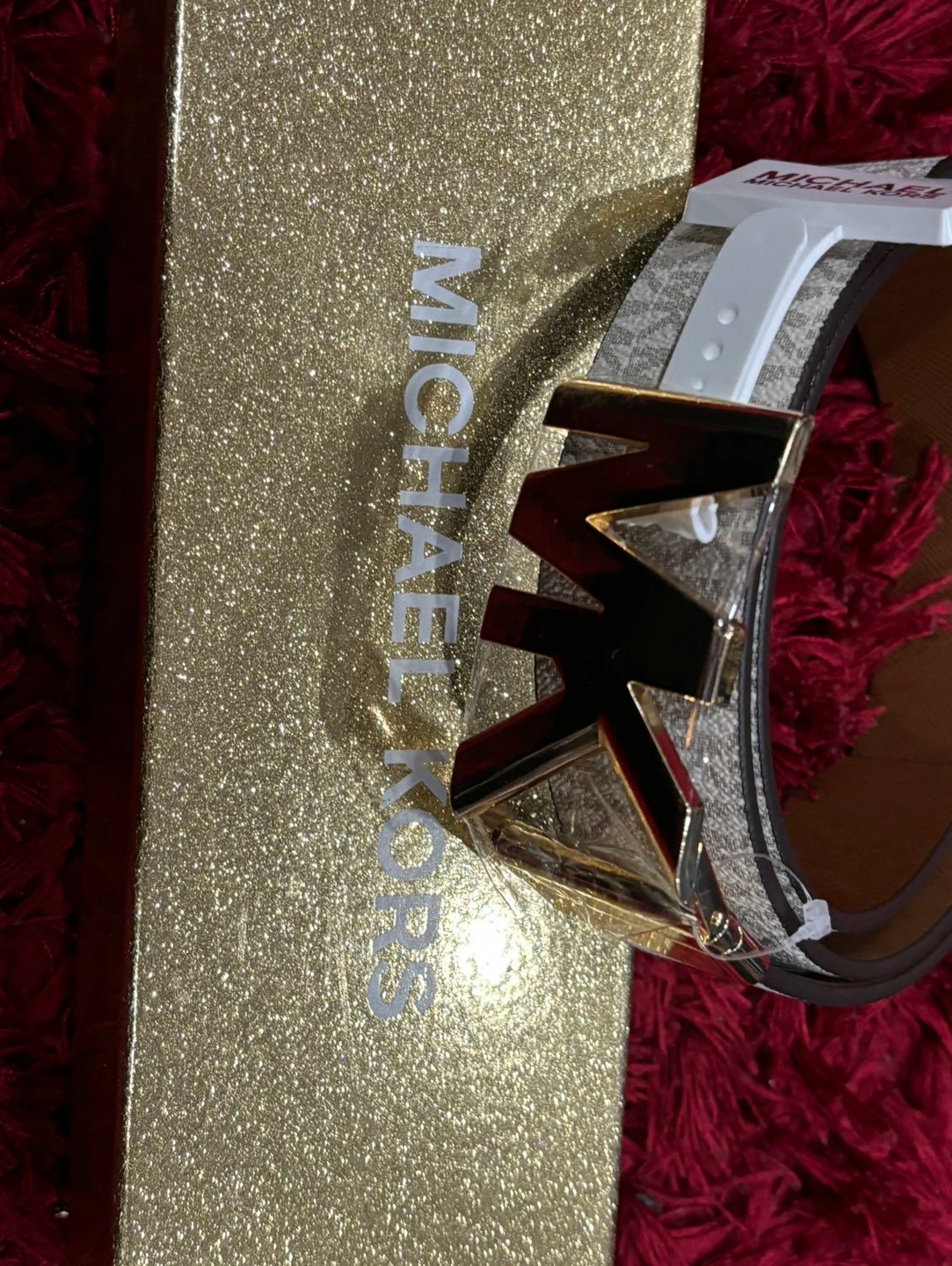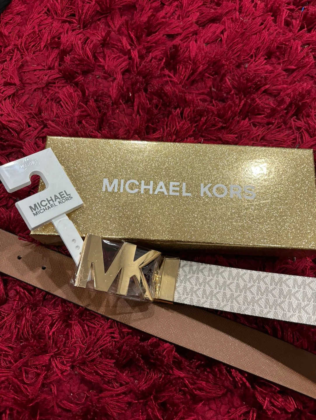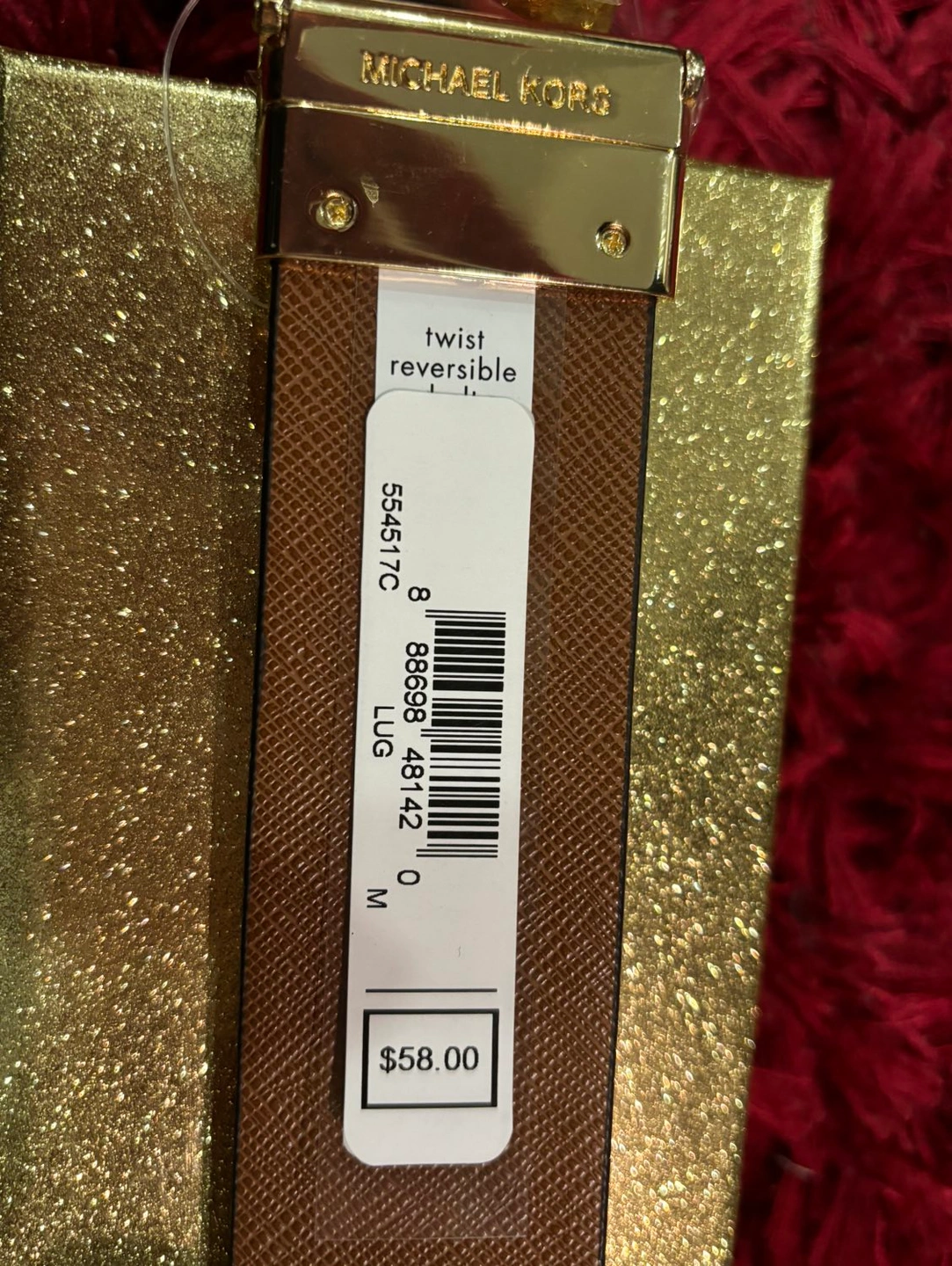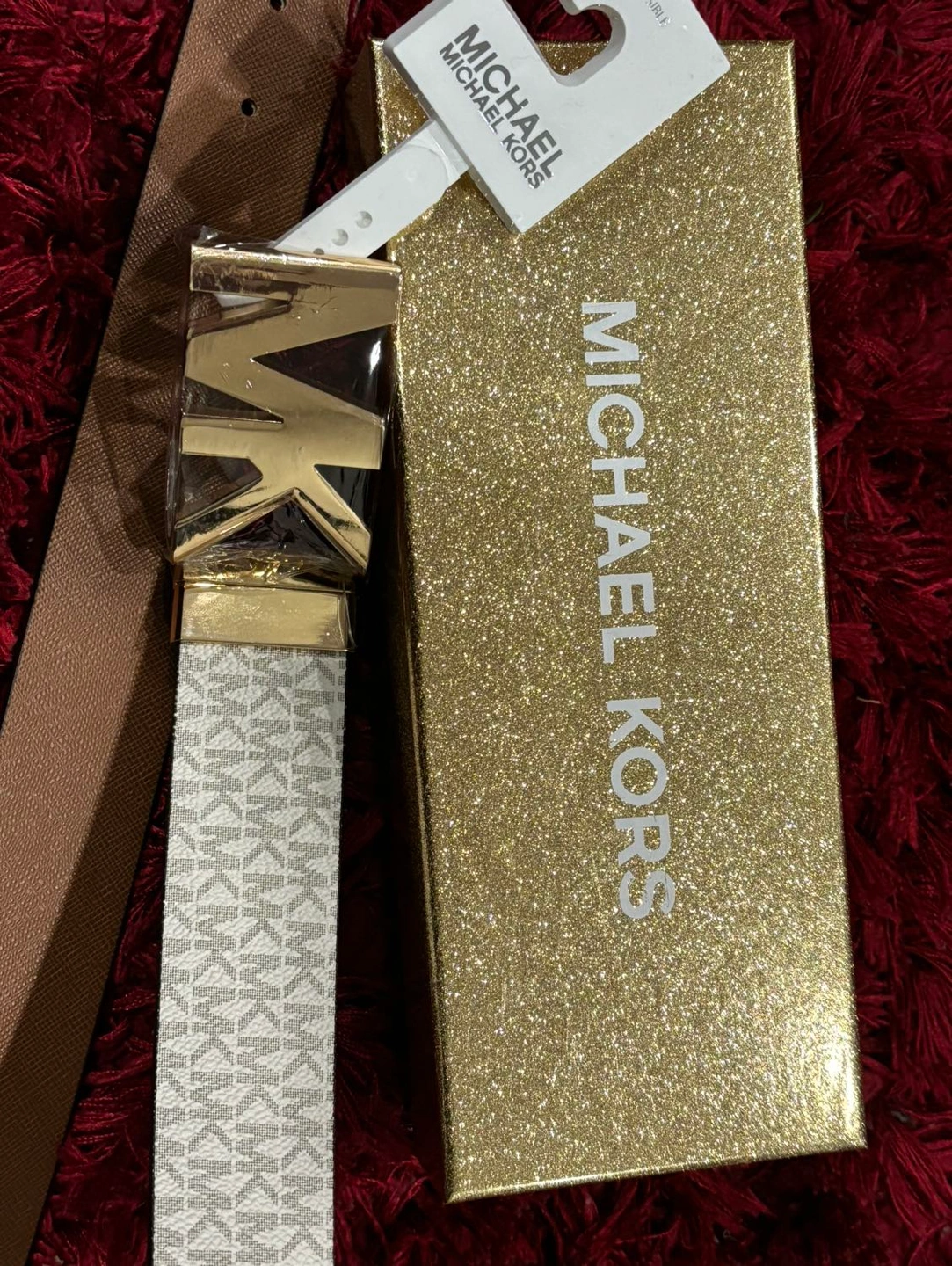 White, brown and gold logo REVERSIBLE buckle Michael Kors new belt with tags. This is a medium but can also fit large. A must have for male or female. Stunning with jeans, dress pants, dumper or even a dress.