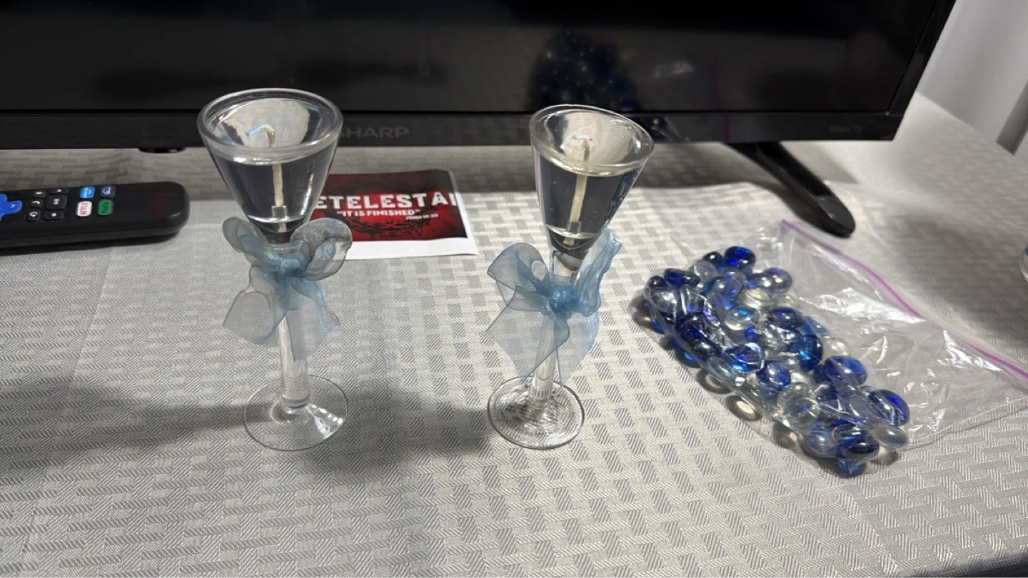Candle Holders with Blue Ribbons (Set of 6)