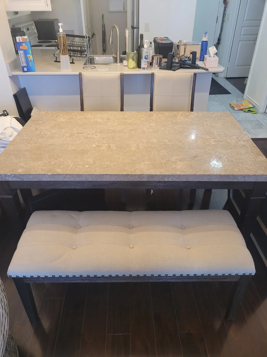 Moving Out! Giving away marble dining table with 4 chairs and 1 bench (6 seats). Pick up only (probably bring 2+ people). DM for address.