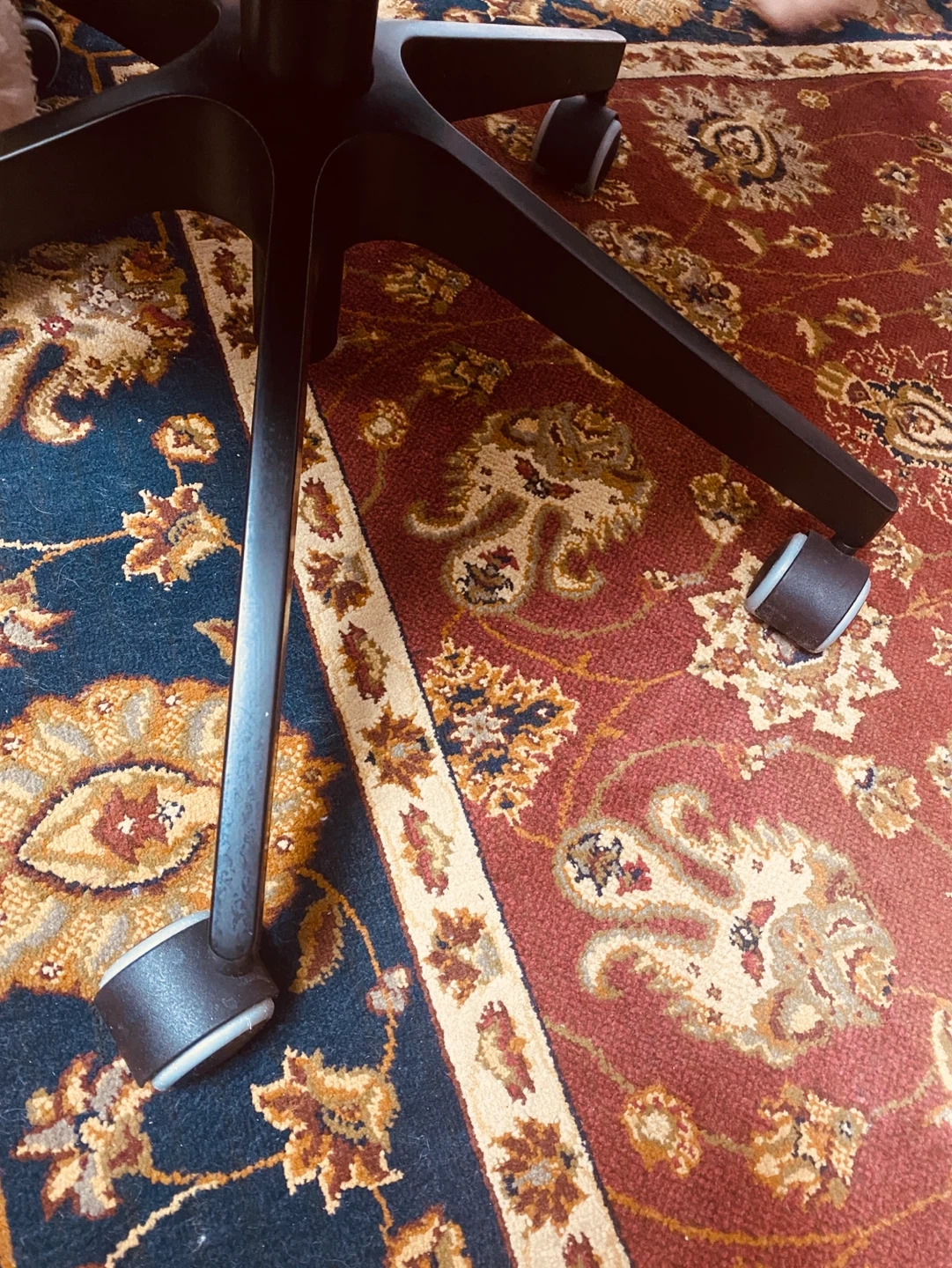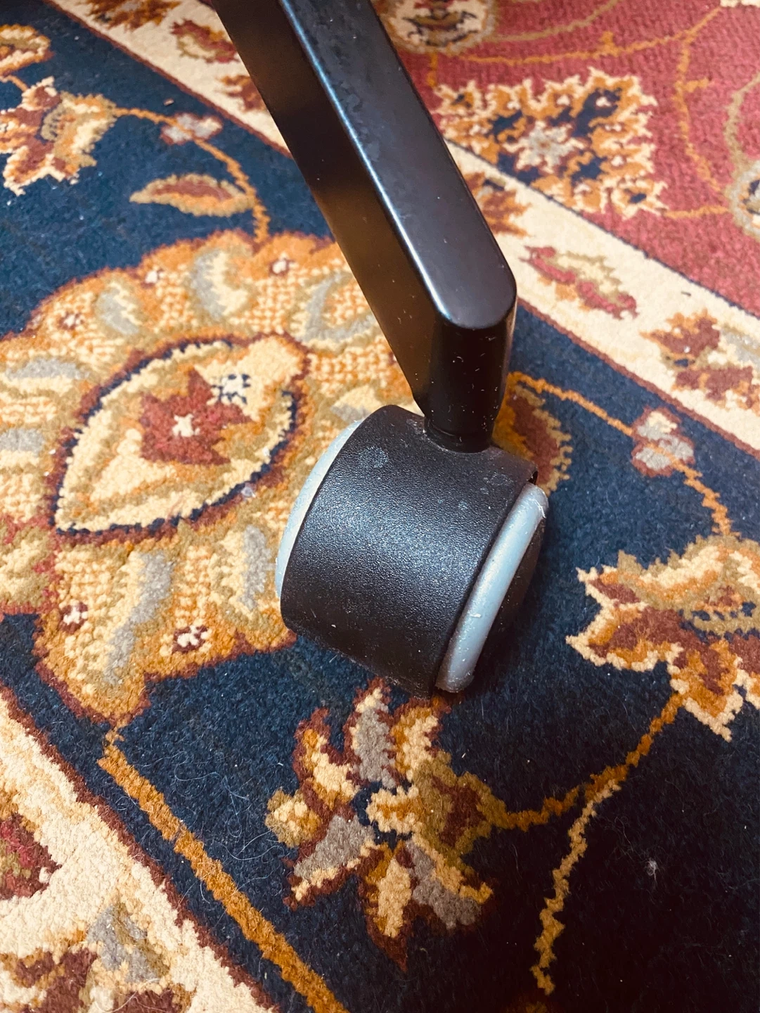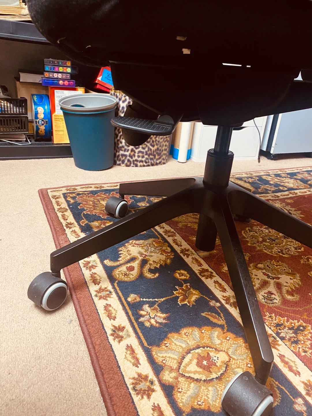 This is a black mesh office chair with a headrest. It features adjustable height and a swivel base with wheels. The chair's mesh back provides breathability and comfort. Perfect for long work sessions at your desk!