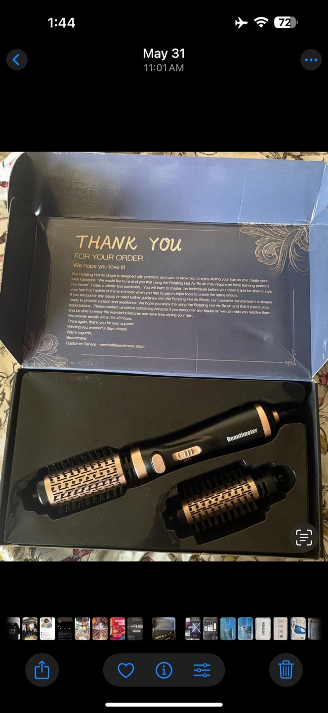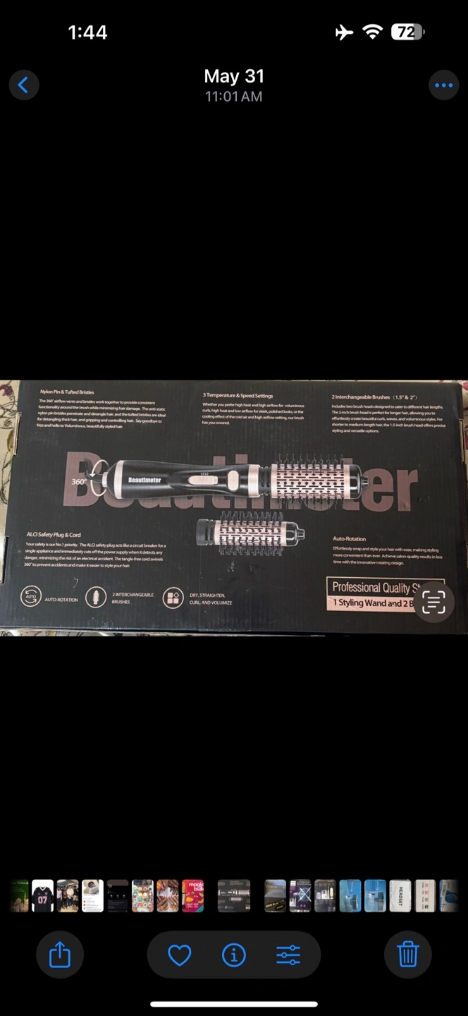 I'm selling a Beautimeter Rotating Hot Air Brush! It's new and comes with two interchangeable brushes (1.5" & 2"). It features two temperature and speed settings, and it can straighten, curl, and volumize your hair. The box is included!