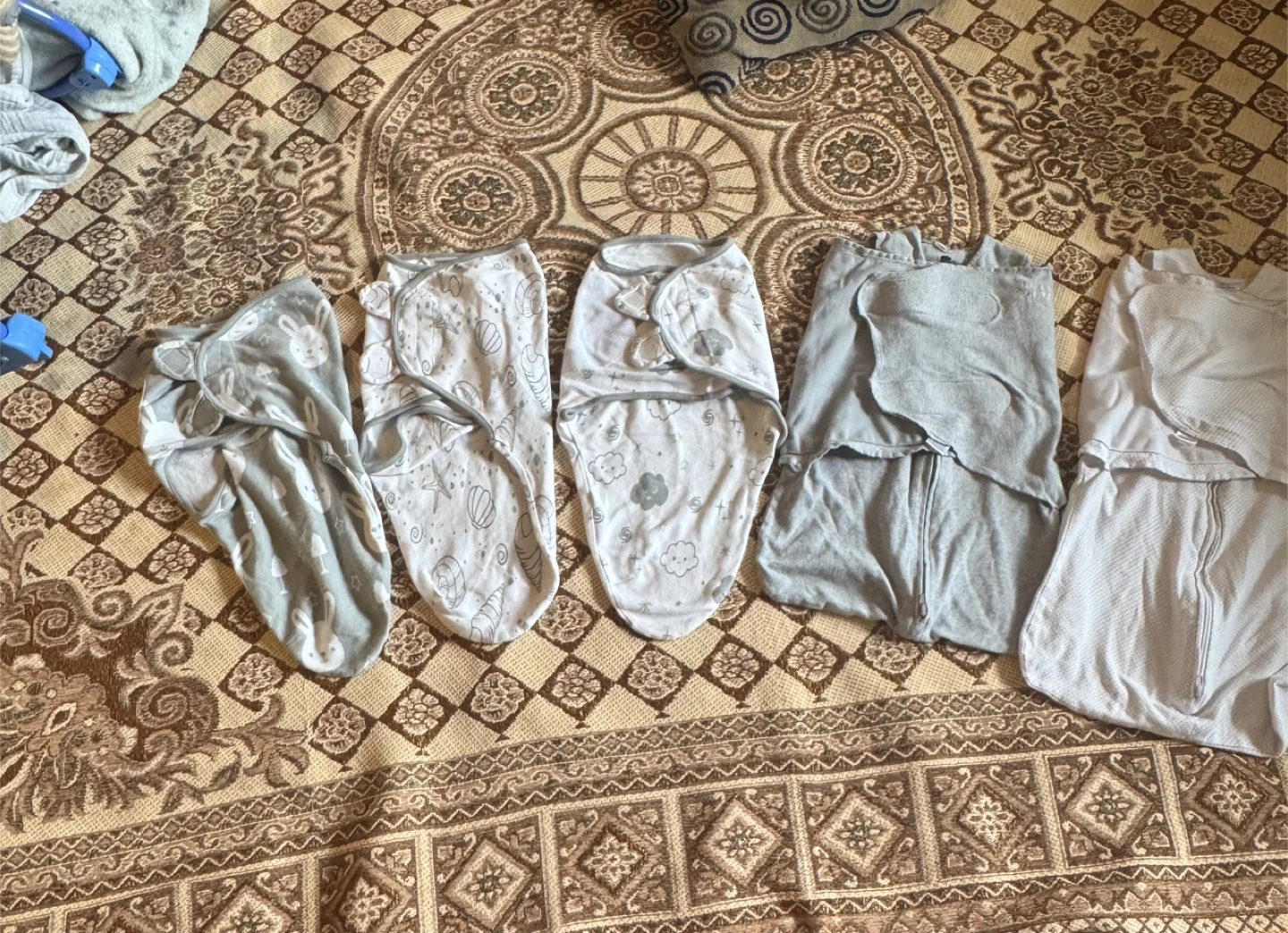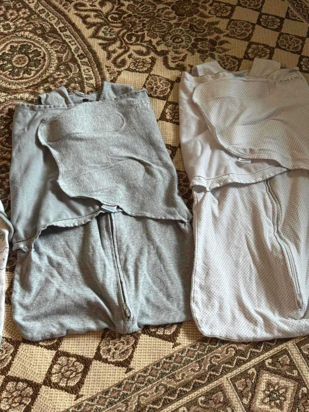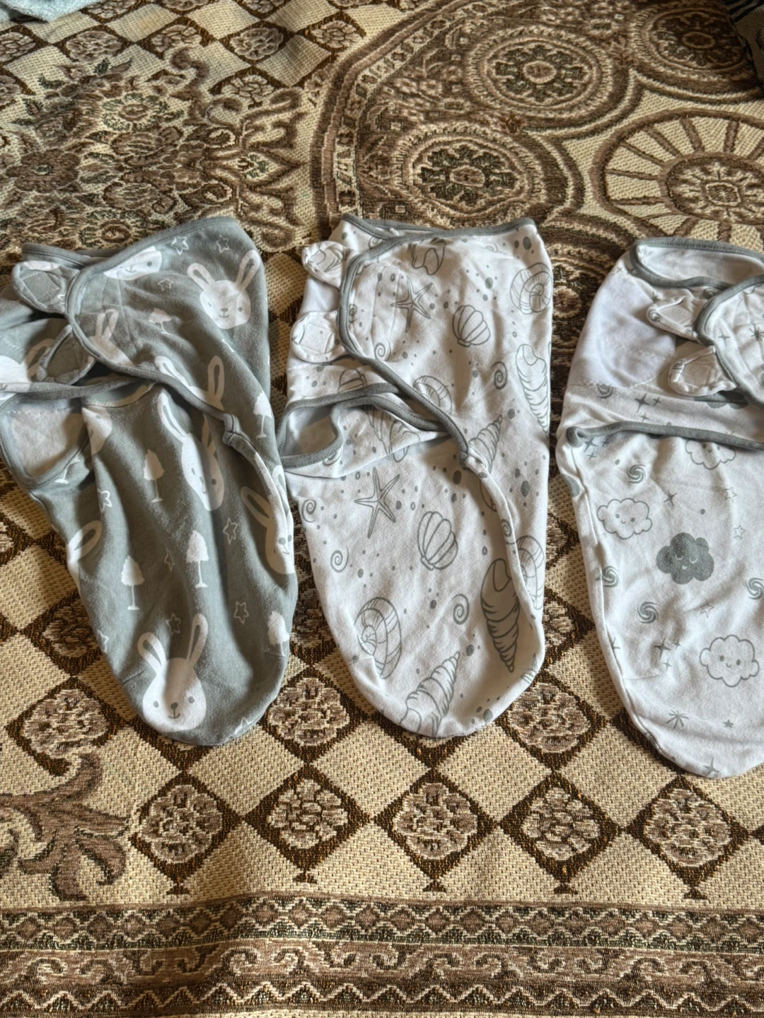 Selling a set of baby swaddles with various designs. They're in good condition and ready to keep your little one snug and secure! The designs include bunnies, seashells, clouds, hearts and polka dots 5$ each