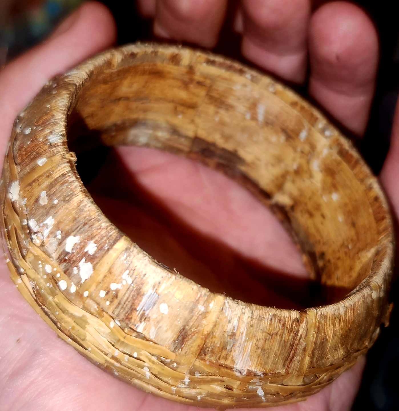 Here's a free unique hand woven wood bangle bracelet! It has a natural, earthy look. Perfect for adding a touch of rustic charm to any outfit. Pick up only.