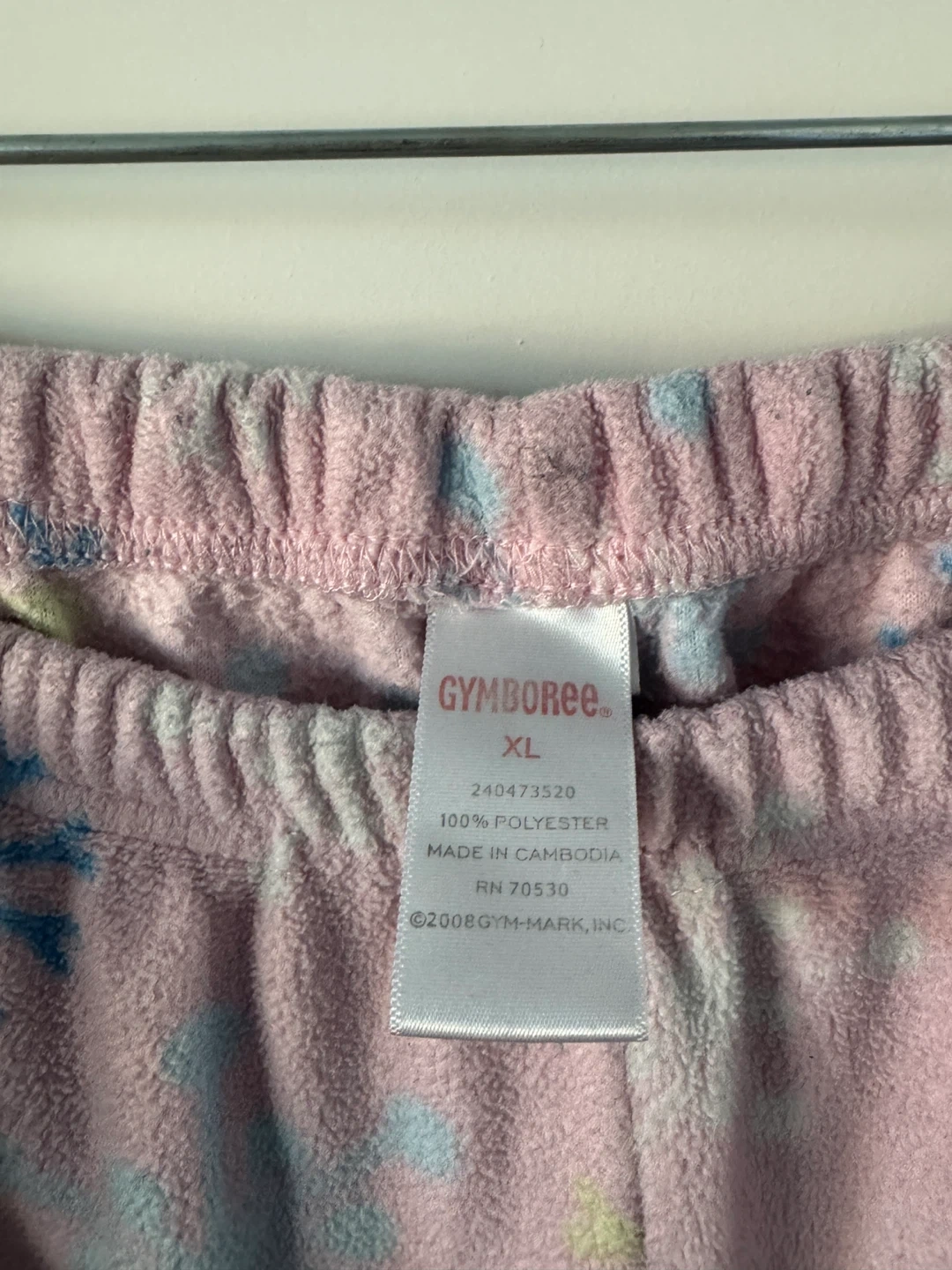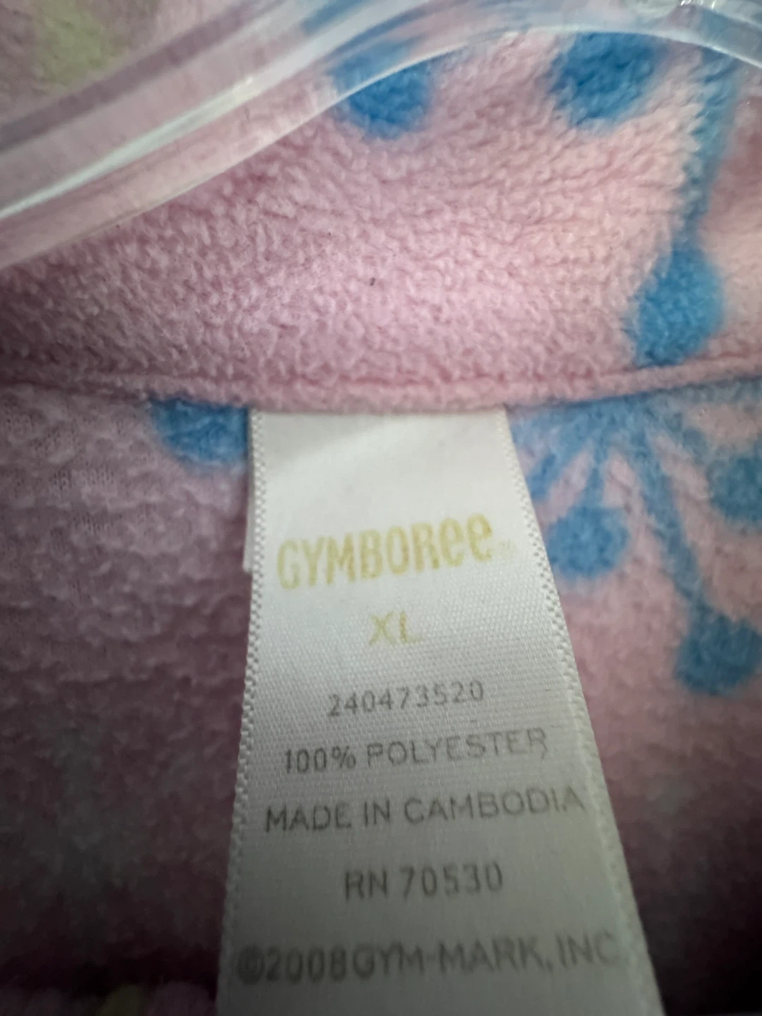 Comfy pink fleece pajama set from Gymboree. It's size XL and features a cute snowflake pattern. Made from 100% polyester for warmth.