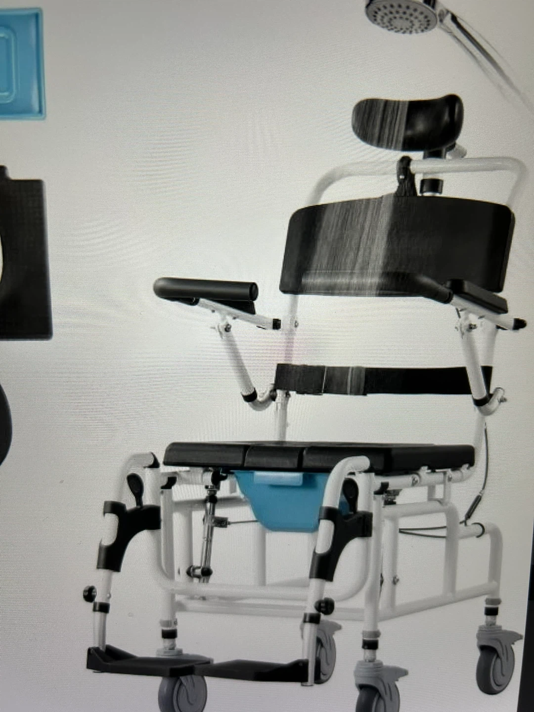 Selling a rolling shower commode chair. It's in new condition and comes in its original box. Perfect for anyone needing a safe and comfortable shower experience