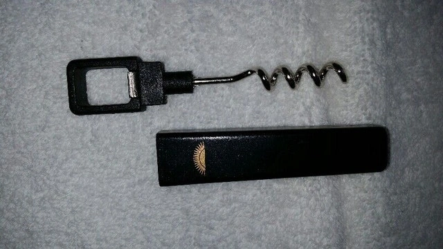 Never used, black carrying case with accessories, convenient for parties, picnics, and getaways. Features a sturdy handle with an adjustable, detachable shoulder strap. One side is thermal insulated to keep your beverage cold, and the other holds 2 acrylic wine glasses (included). If you remove the glasses, you can fit a second bottle. Dimensions: 14" tall, 8" wide, 4" depth. Set also includes a corkscrew and pour/stopper. Has the Plesman Publications logo on the front. Made by California Innovations. Pickup in Brampton, near Queen and Kennedy.