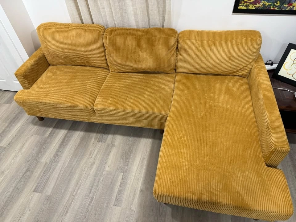 This set is rarely used I kept it to fill up the space (moving sale) Sofa and detachable Chaise together (one set).