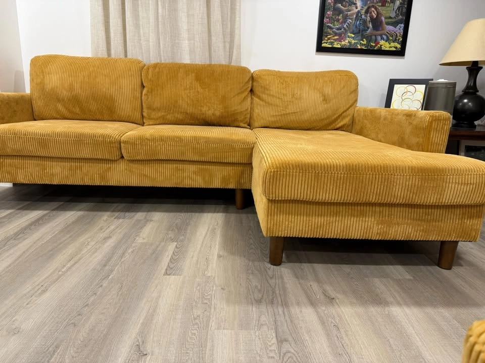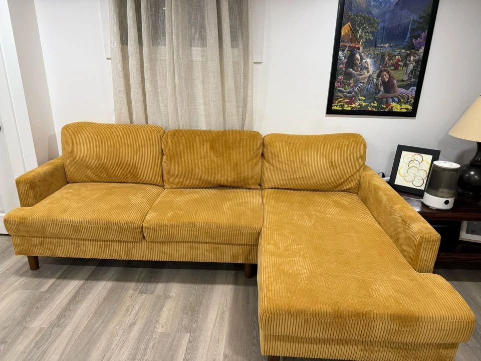 This set is rarely used I kept it to fill up the space (moving sale) Sofa and detachable Chaise together (one set).