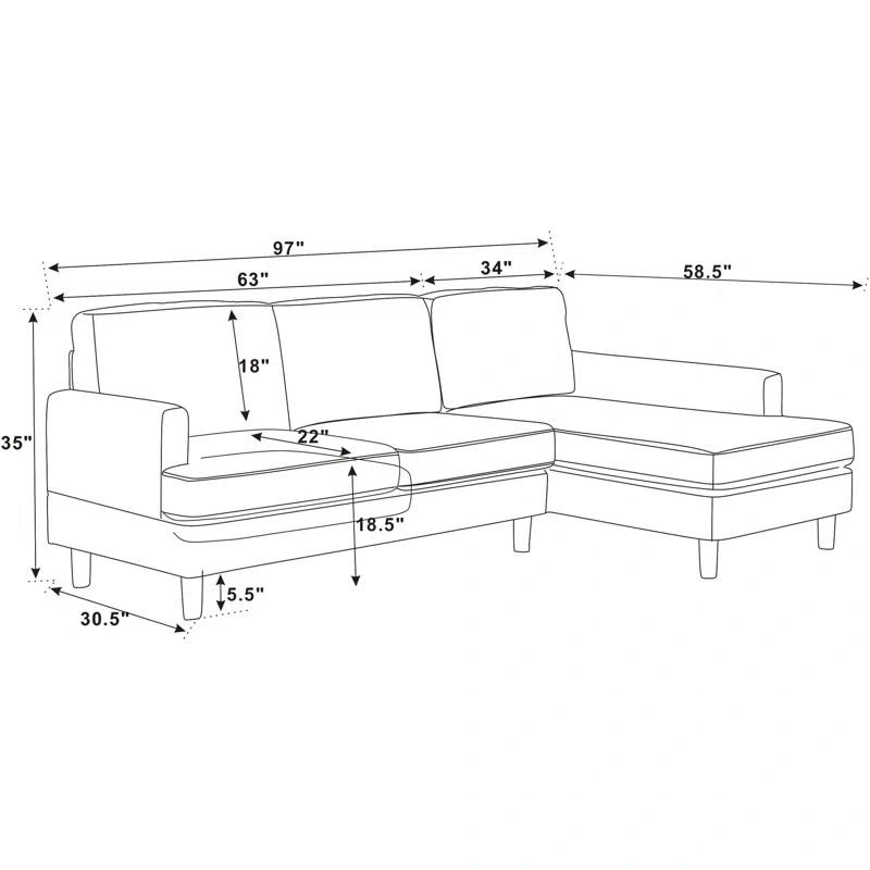 Aristotele 97" Wide Right Hand Facing Modular Sofa